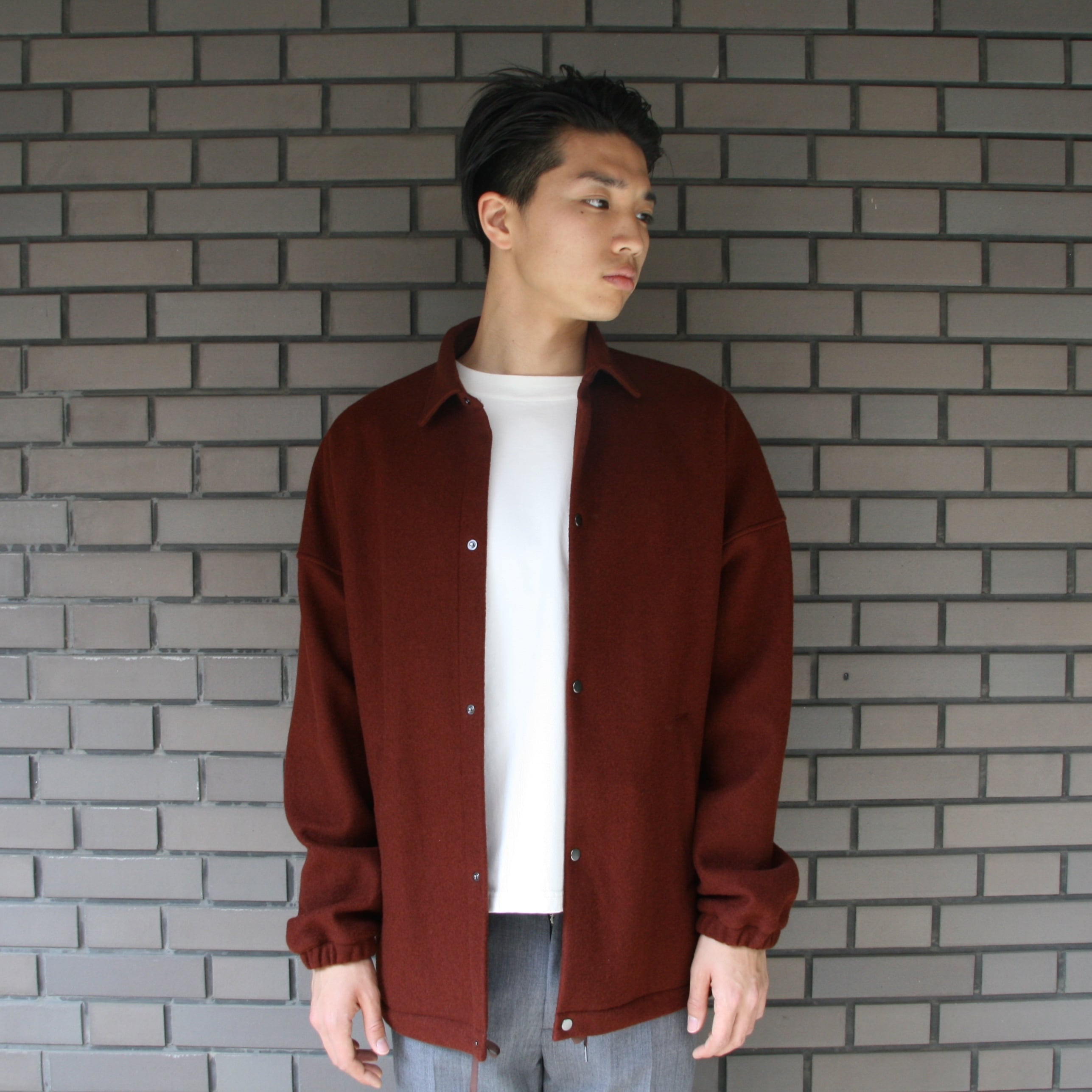 縮絨ニットを使用し、伸縮性、保温性が優れたコーチジャケット。