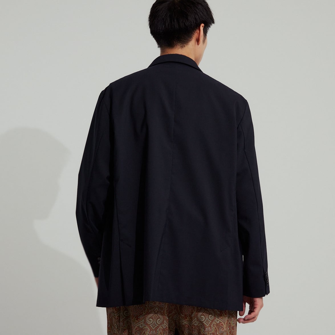 サイジングは当ブランドのジャケットの中でもゆったりとしていますので、ややオーバーサイズ気味に着用されたいという場合にもぴったりです。