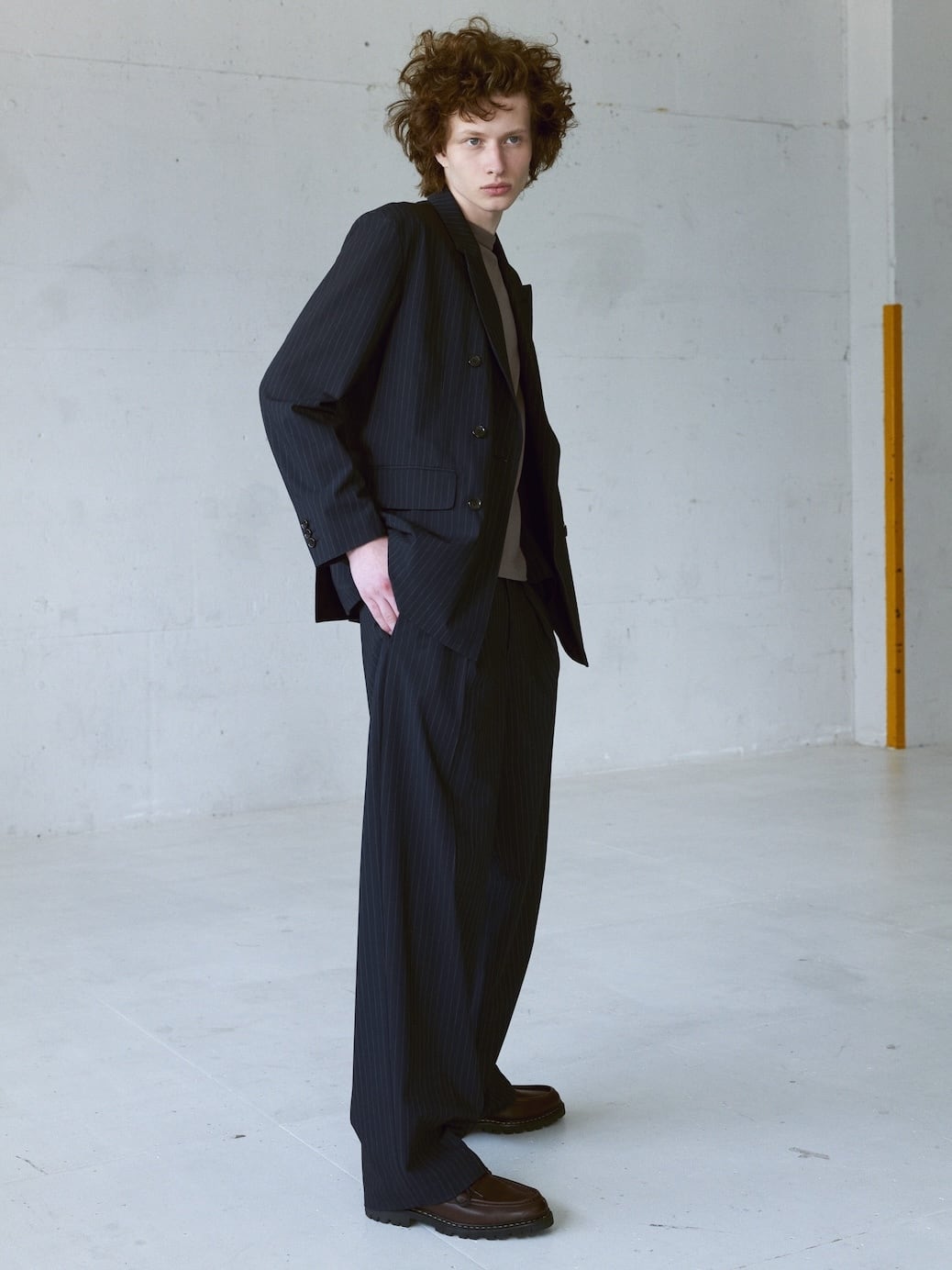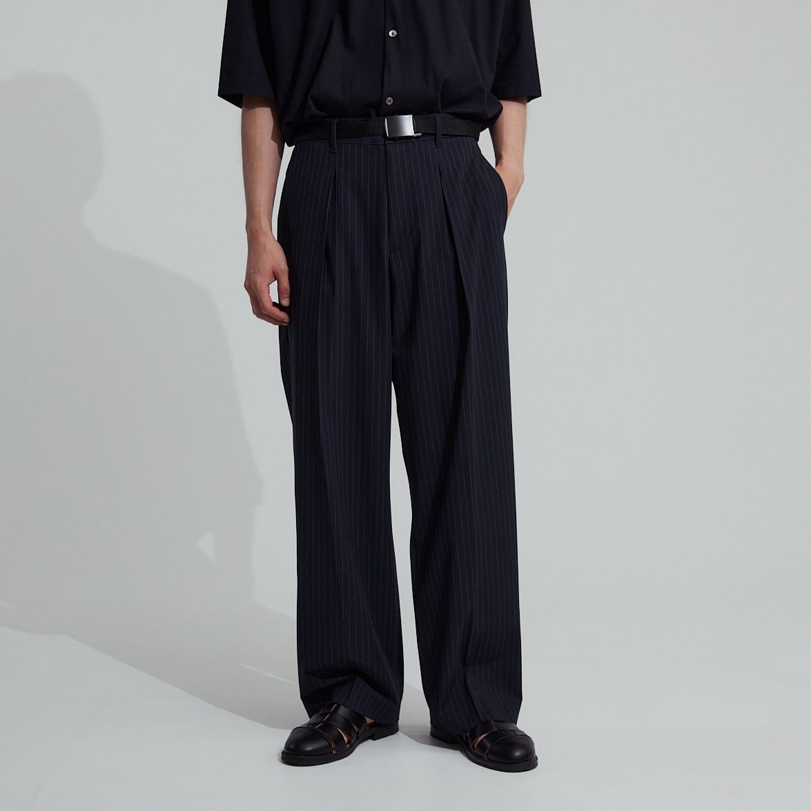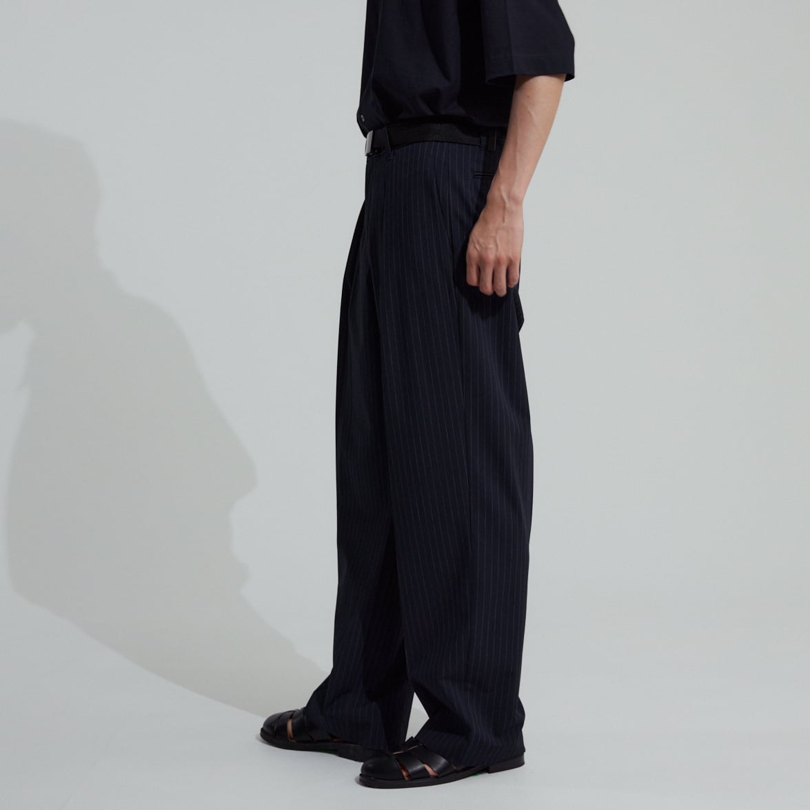 登場以来当ブランドの定番となった"360度どこから見ても美しいシルエット"に拘ったワンタックパンツ、今シーズンはクールなピンストライプ柄の登場です。