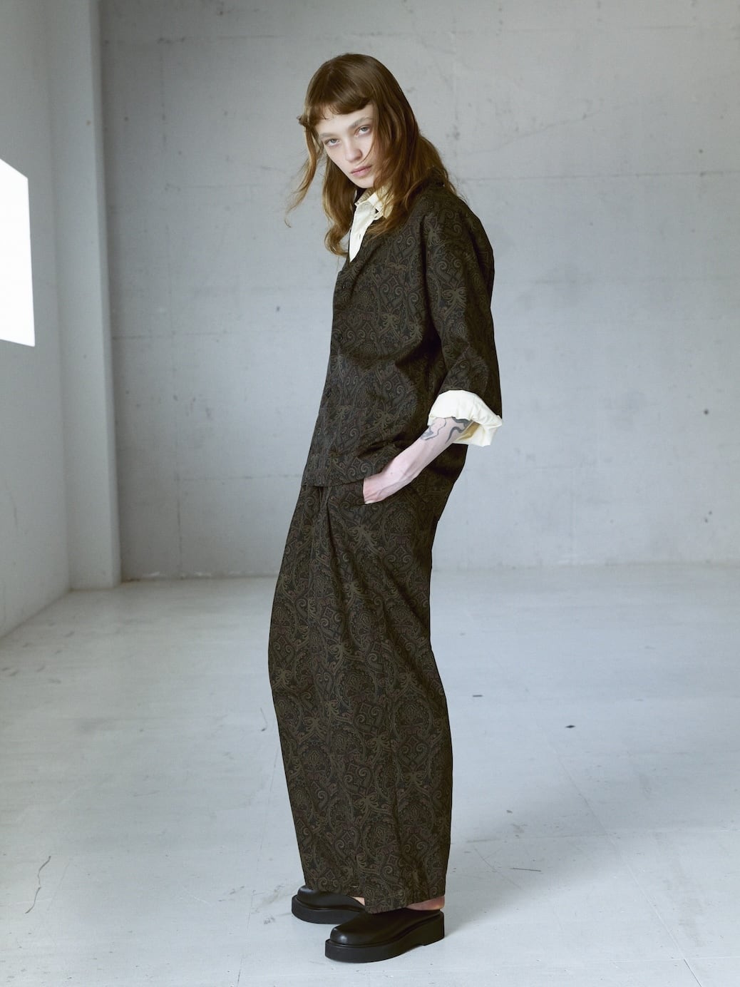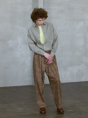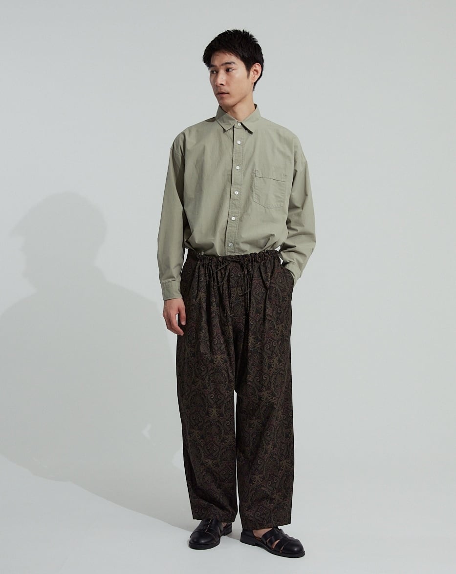 同素材の「コットンペイズリーBOX H/Sシャツ」とのセットアップコーディネートは、タックインするとオールインワンの様に見え、女性にも人気の着方です。
