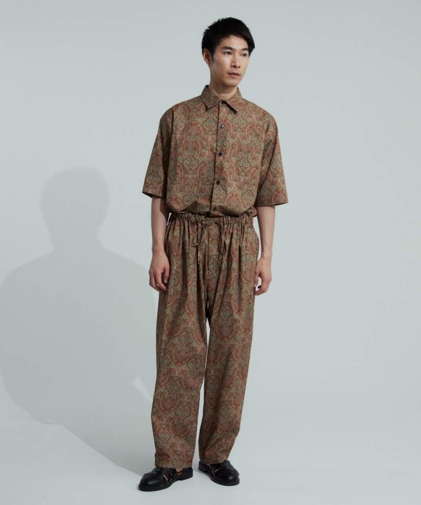 生地には肌触りの優しい国産綿タイプライターをベースに、美しく繊細なペイズリープリントを施しました。全面プリントなので汗染みやシワなども気にせずご着用頂けます。