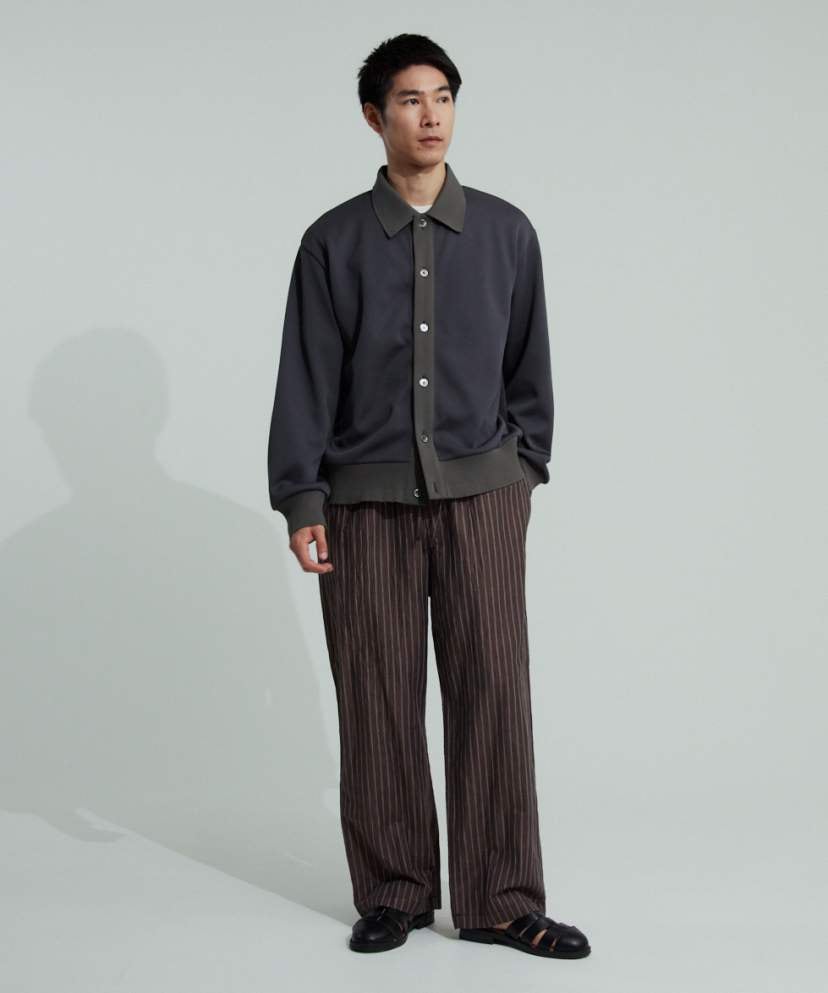 この他、色柄違いでブラウンのご用意もございます。深めのブラウンに細めのストライプが入った生地は、遊び心がありながら落ち着いた印象。