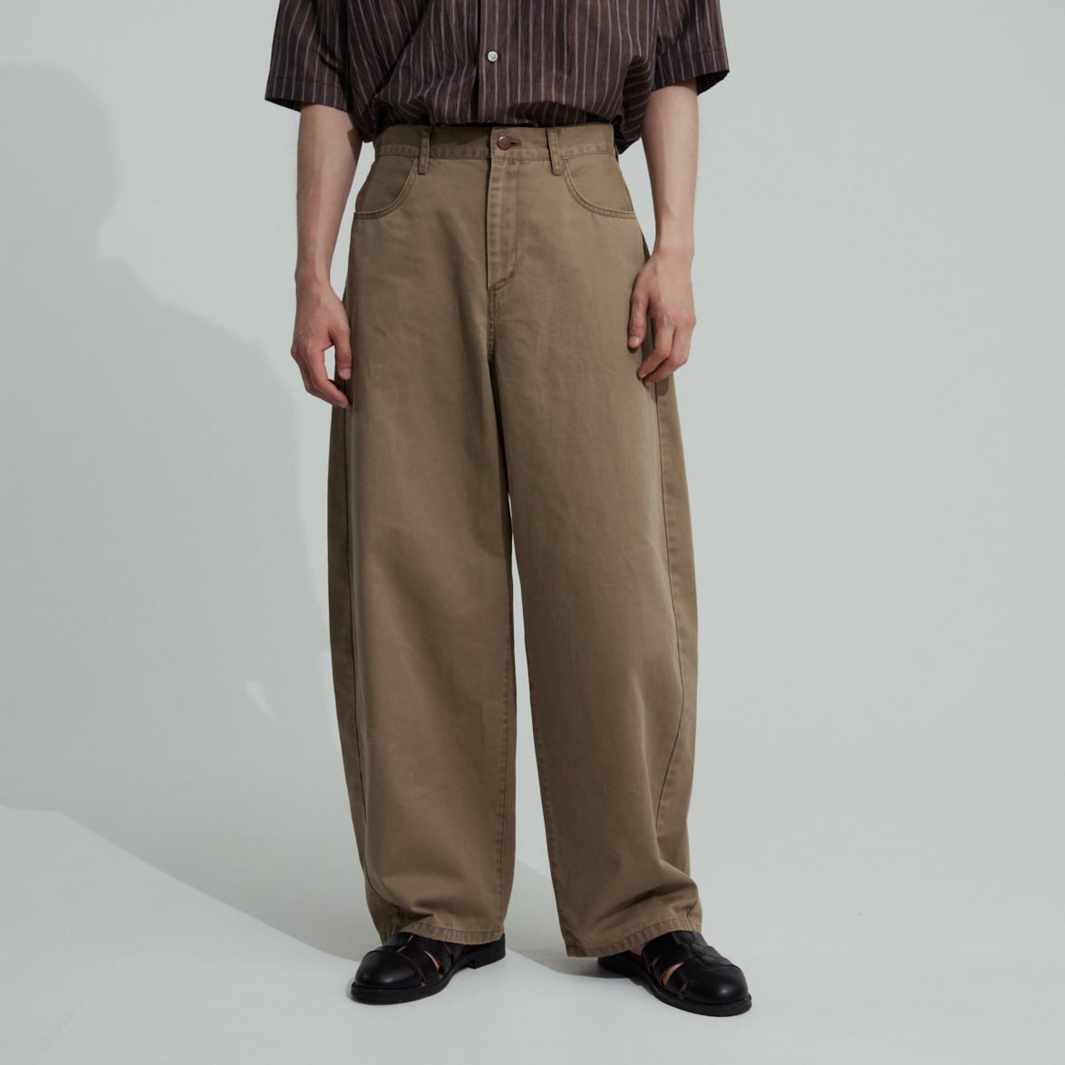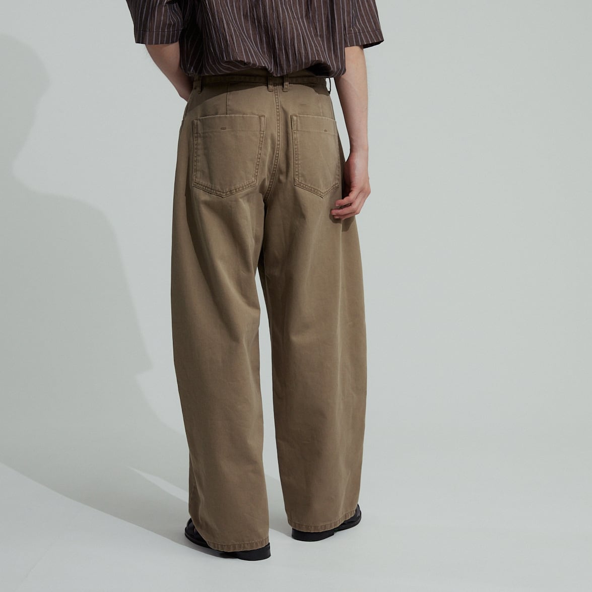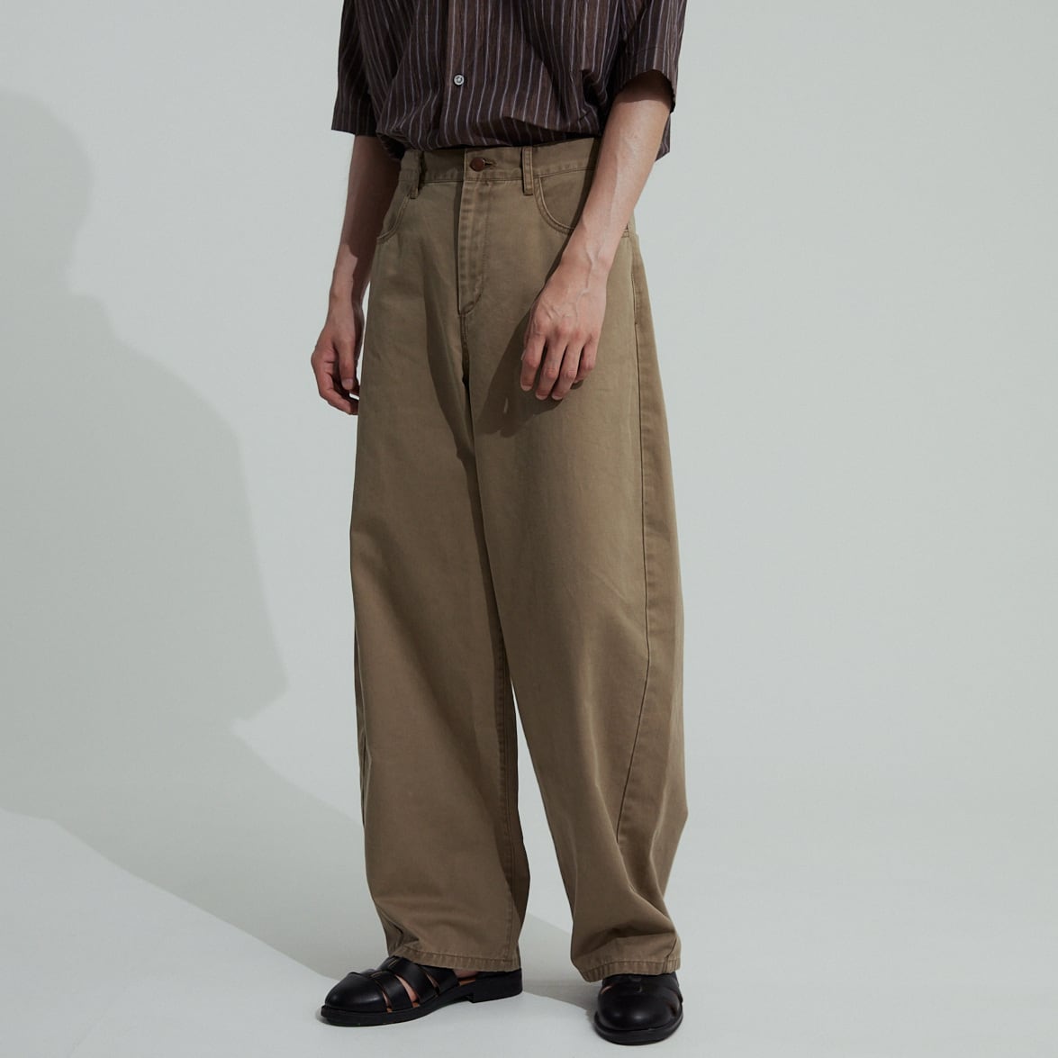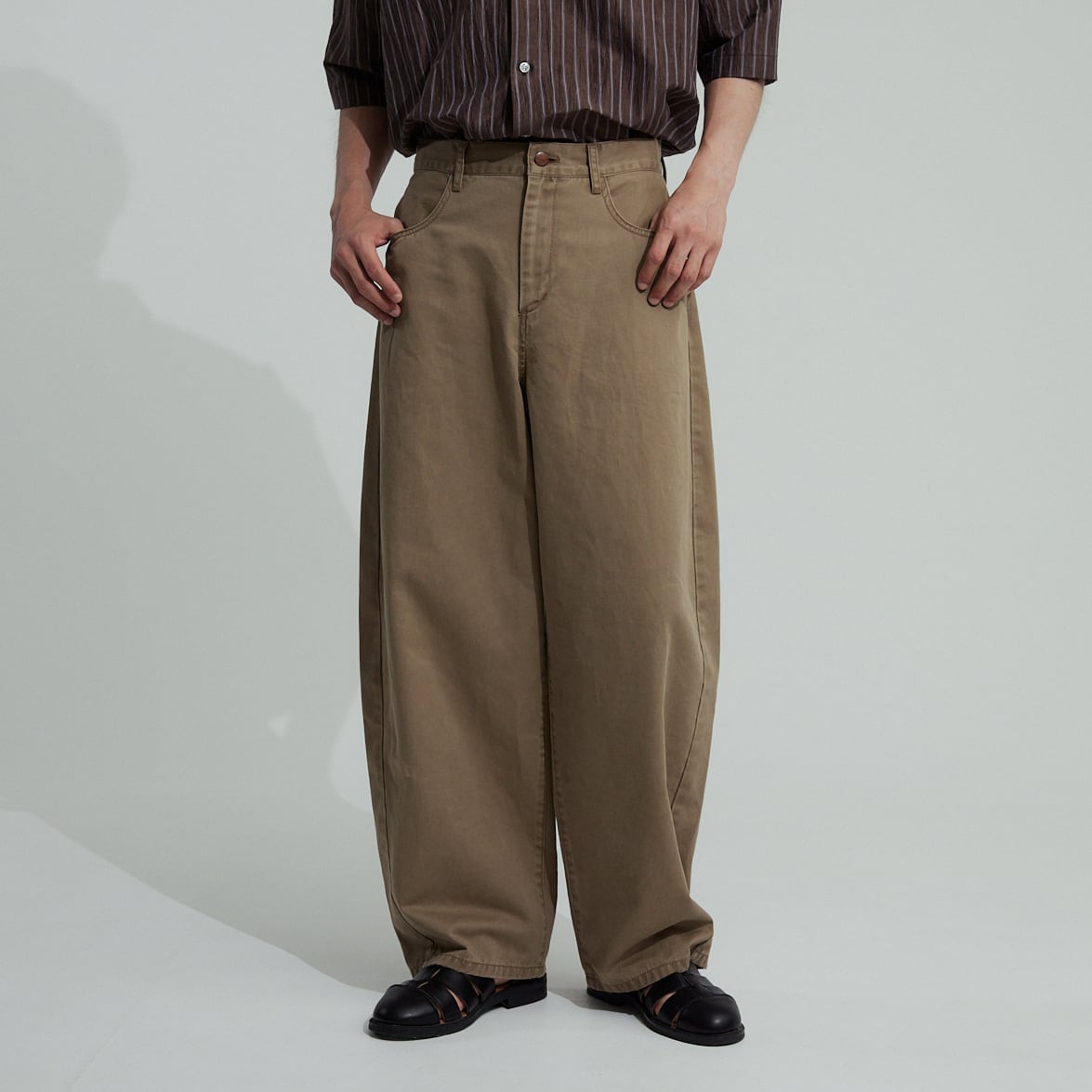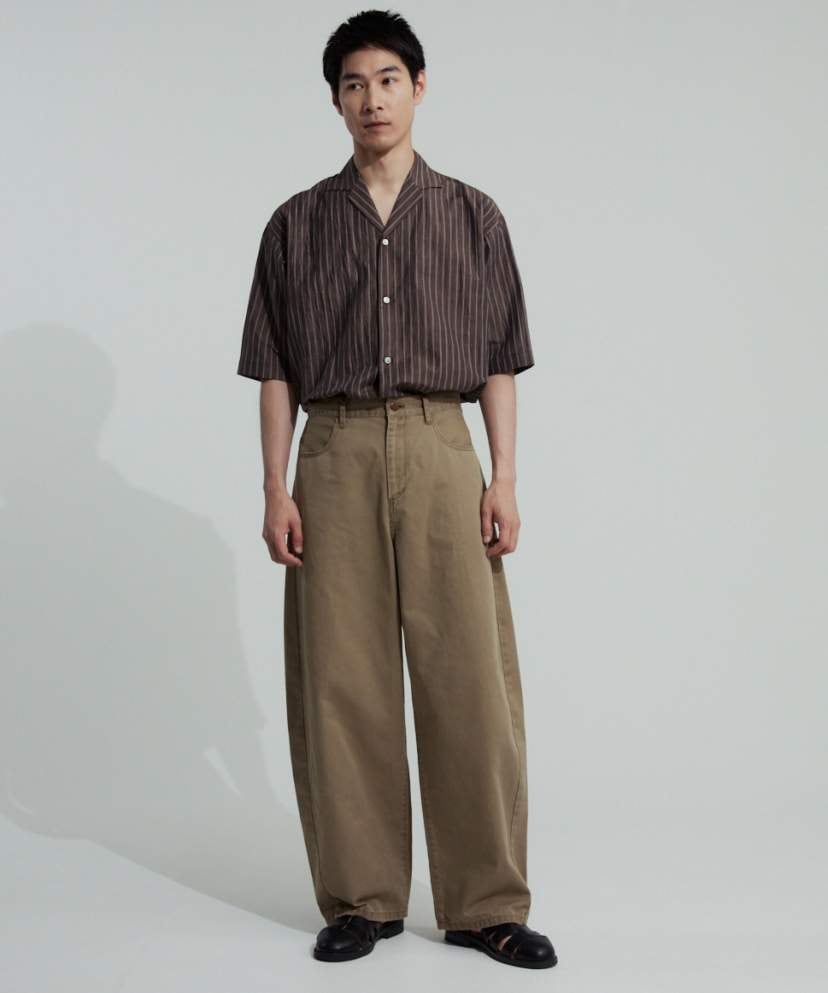 元々しっかりとした厚みがある無骨な綿チノ素材に、ボールバイオ加工を施すことによりヴィンテージ感が加わると共に適度にコシが抜け、非常にしなやかで軽量な仕上がりに。