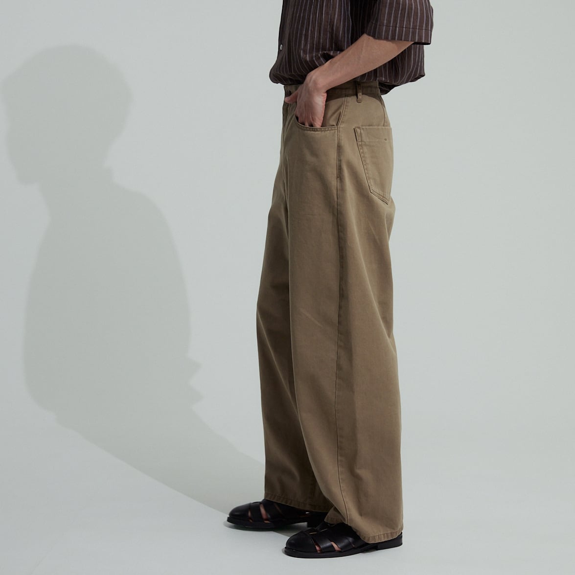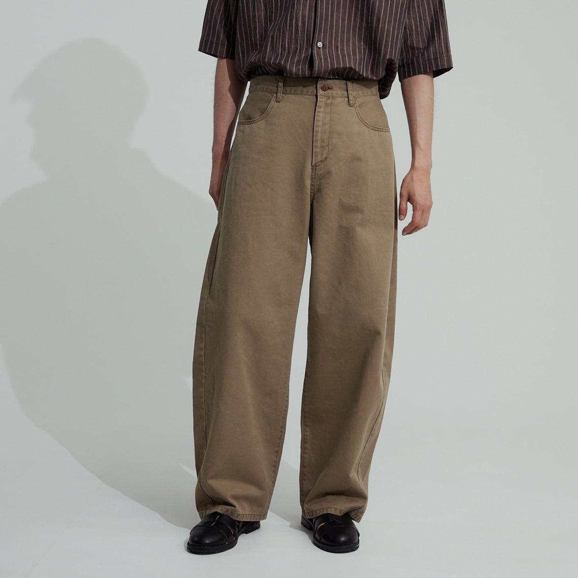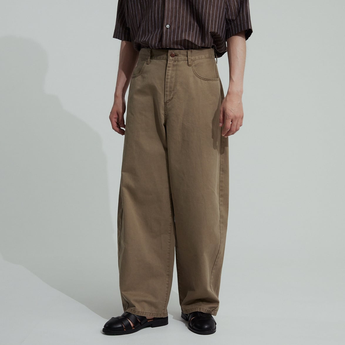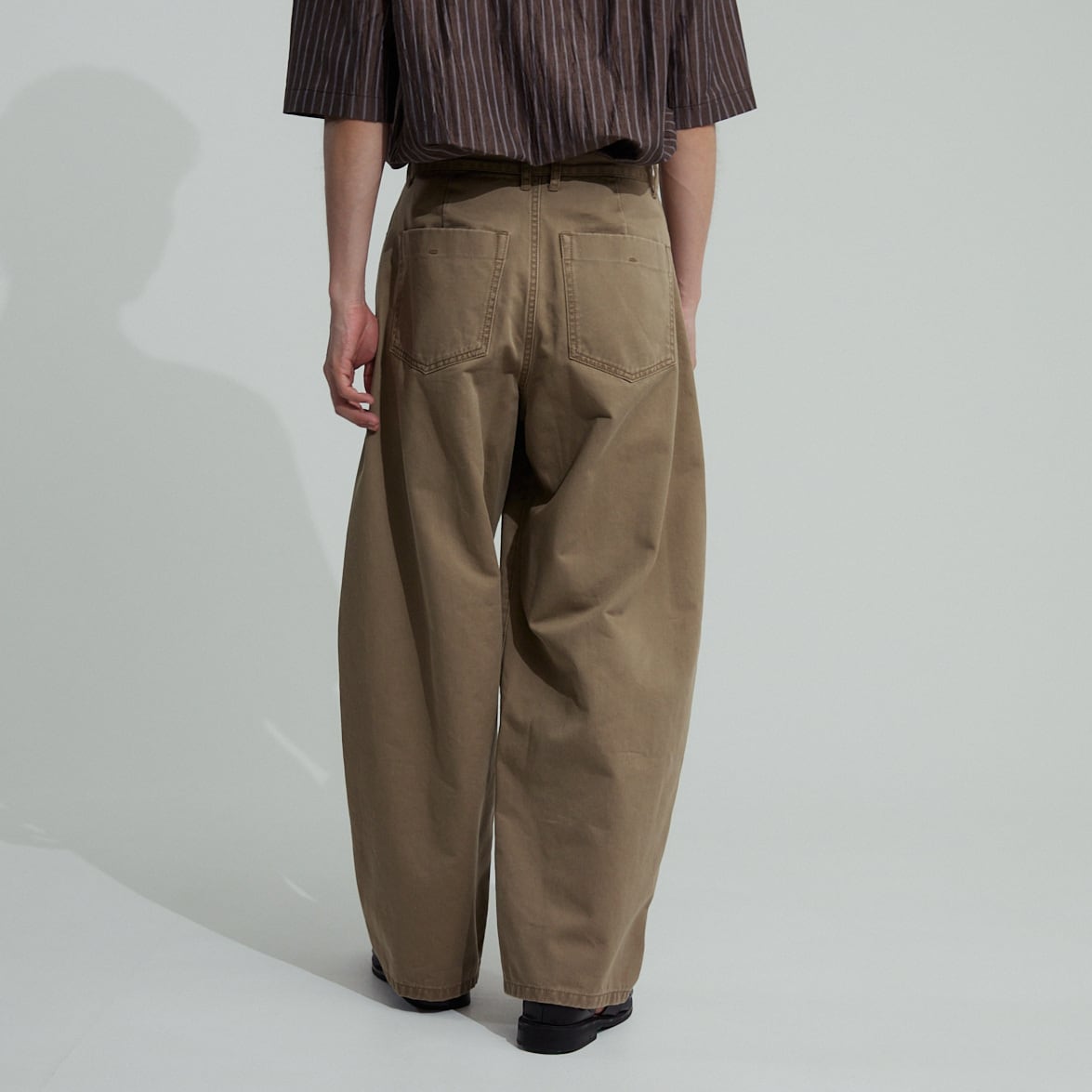 元々しっかりとした厚みがある無骨な綿チノ素材に、ボールバイオ加工を施すことによりヴィンテージ感が加わると共に適度にコシが抜け、非常にしなやかで軽量な仕上がりに。