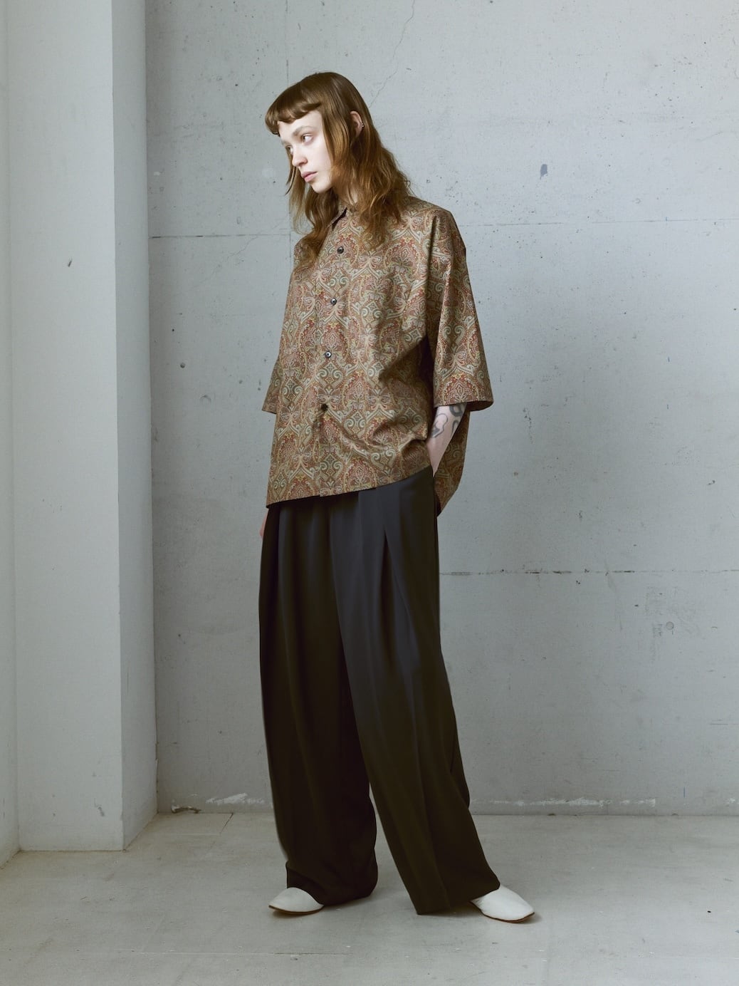 2タック仕様で腰回りがゆったりとした ワイドシルエットですが、インタックの為、外側に広がりすぎずトップスとのバランスが取りやすいのもポイントです。