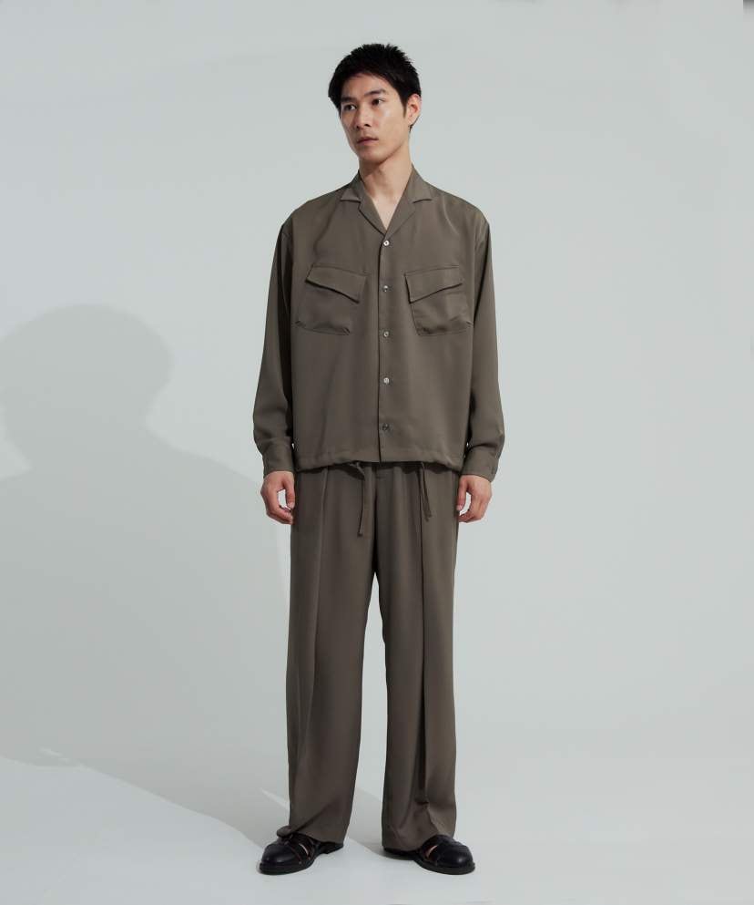 ボトムを選ばない万能選手で、セットアップのPE DRAPE DOUBLE TUCK PTの他、デニムやチノの上に合わせるとコーディネートを格上げしてくれるので大変お勧めです。是非お試し下さい。