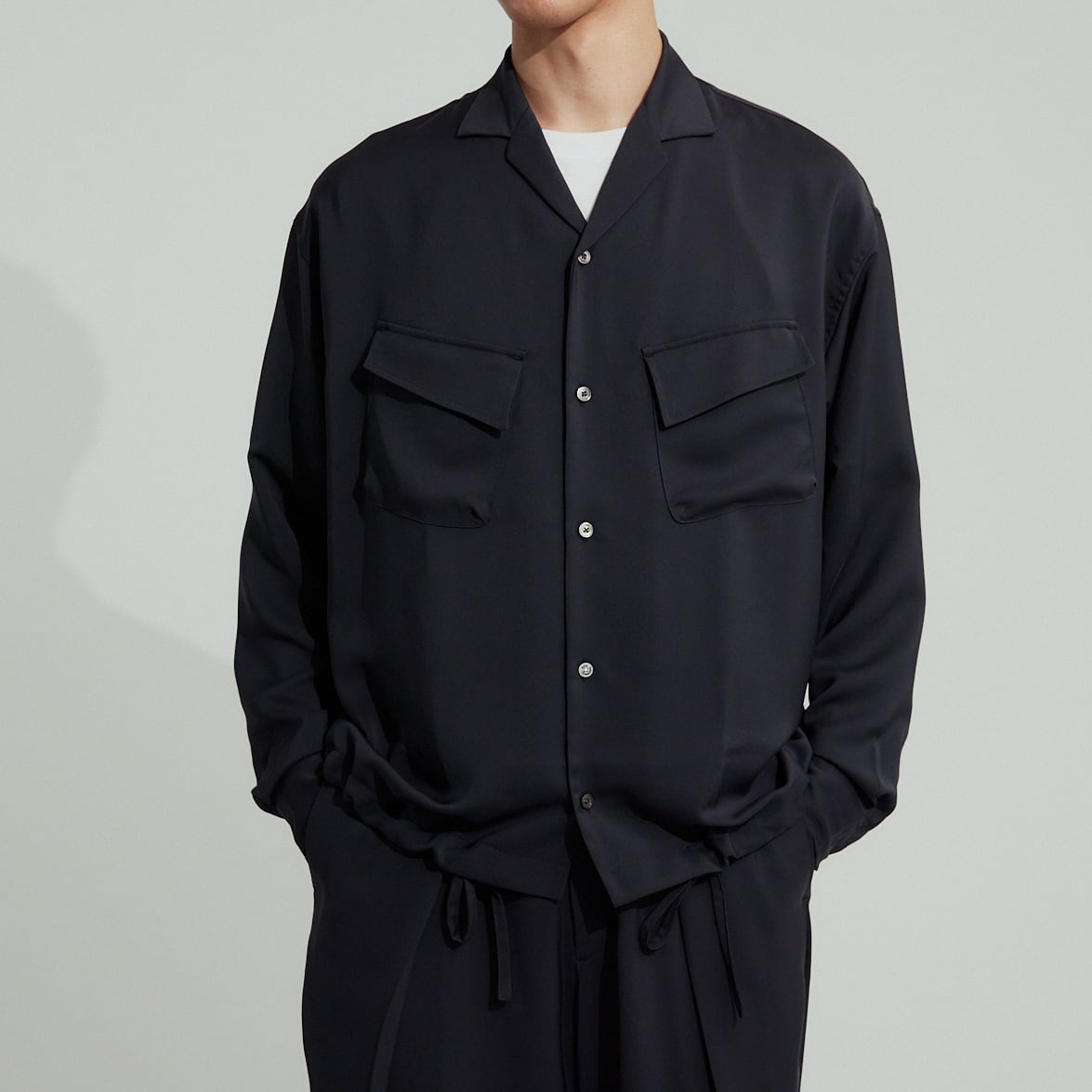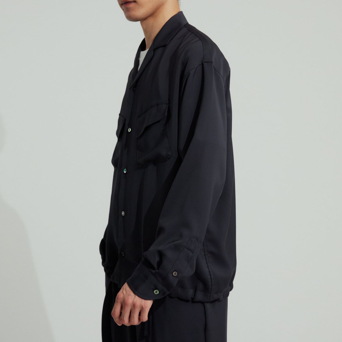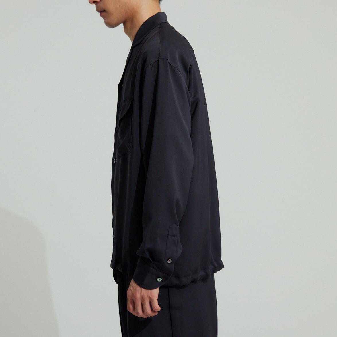 落ち感が美しく涼しげな素材で、サラッとしたタッチは着心地抜群。大変上品で大人な雰囲気です。