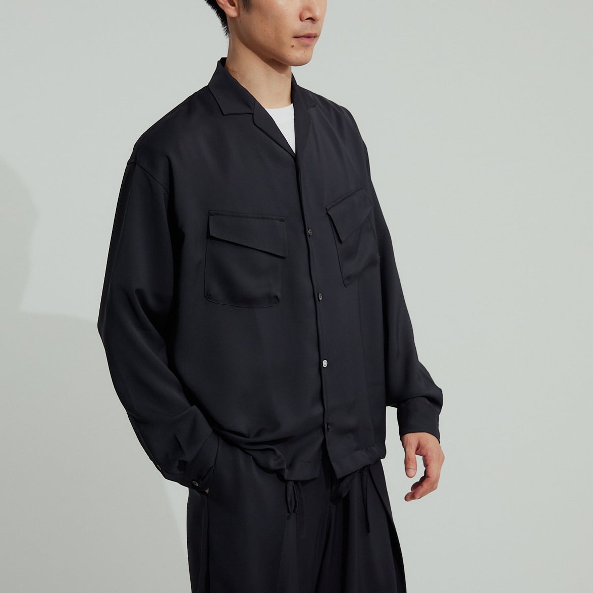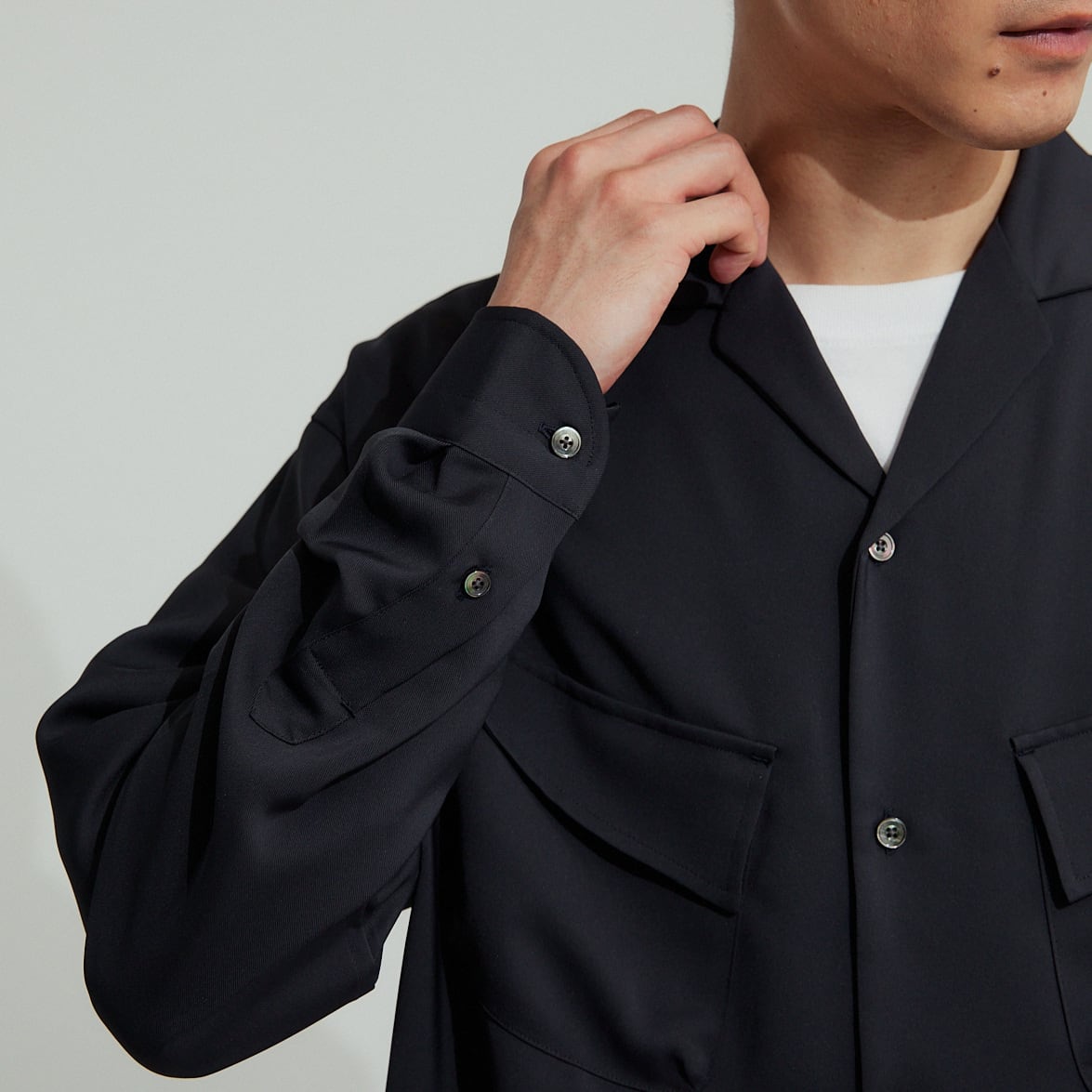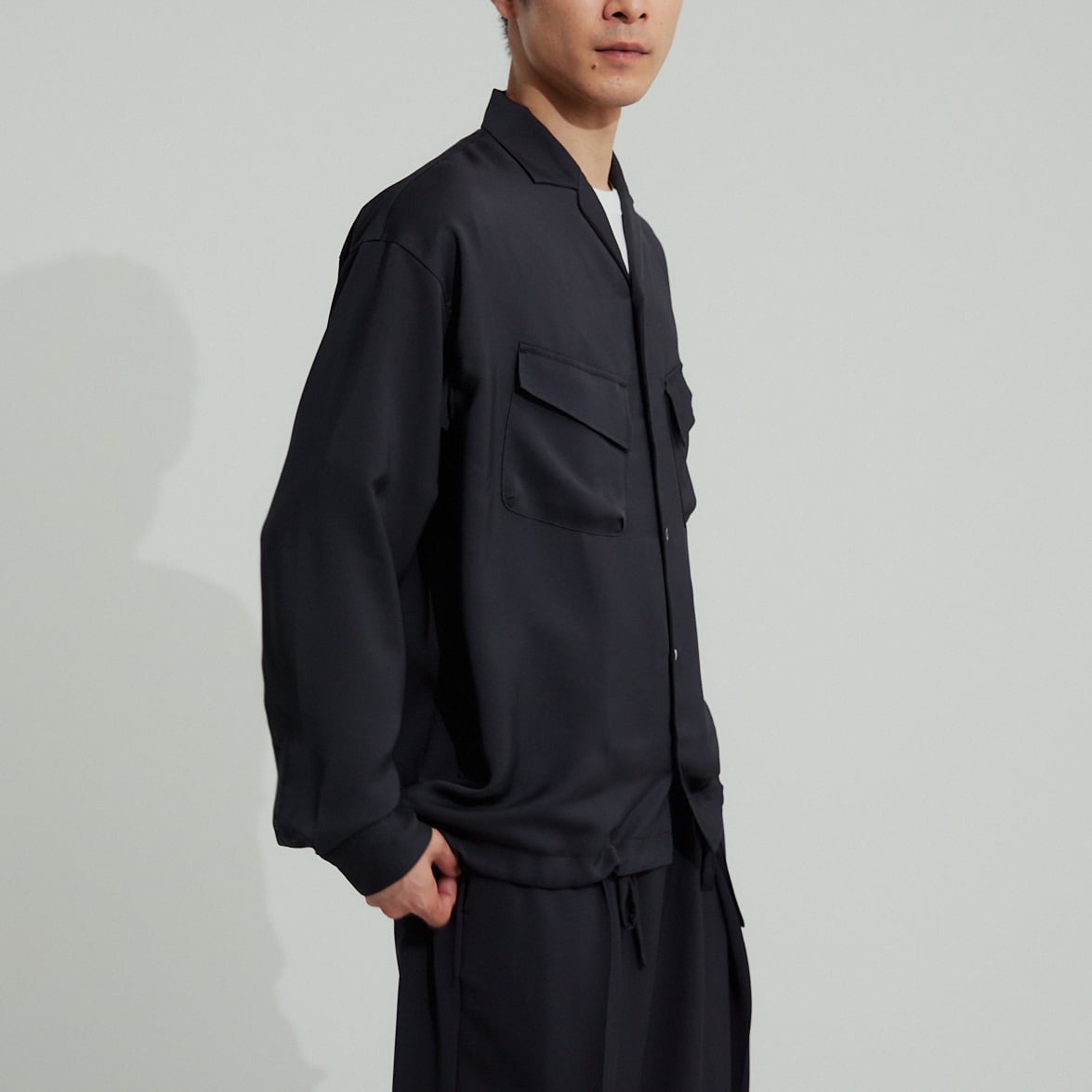 ボトムを選ばない万能選手で、セットアップのPE DRAPE DOUBLE TUCK PTの他、デニムやチノの上に合わせるとコーディネートを格上げしてくれるので大変お勧めです。是非お試し下さい。