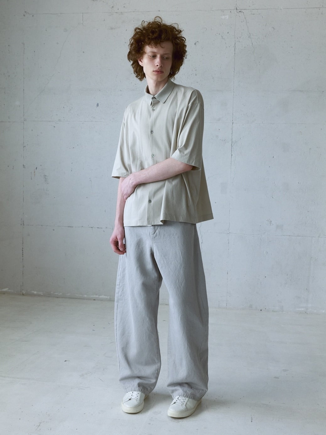 シルエットはゆったりとしたボックス型。ヒップが半分が隠れるくらいの着丈で、ボトムは中太〜ワイド系がおすすめです。