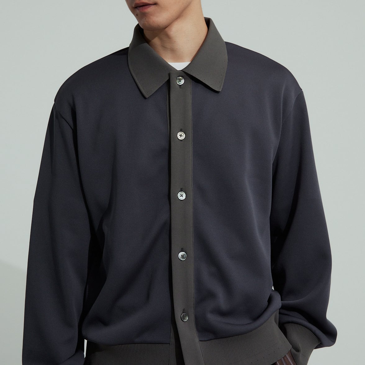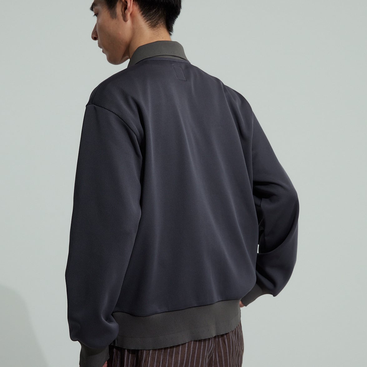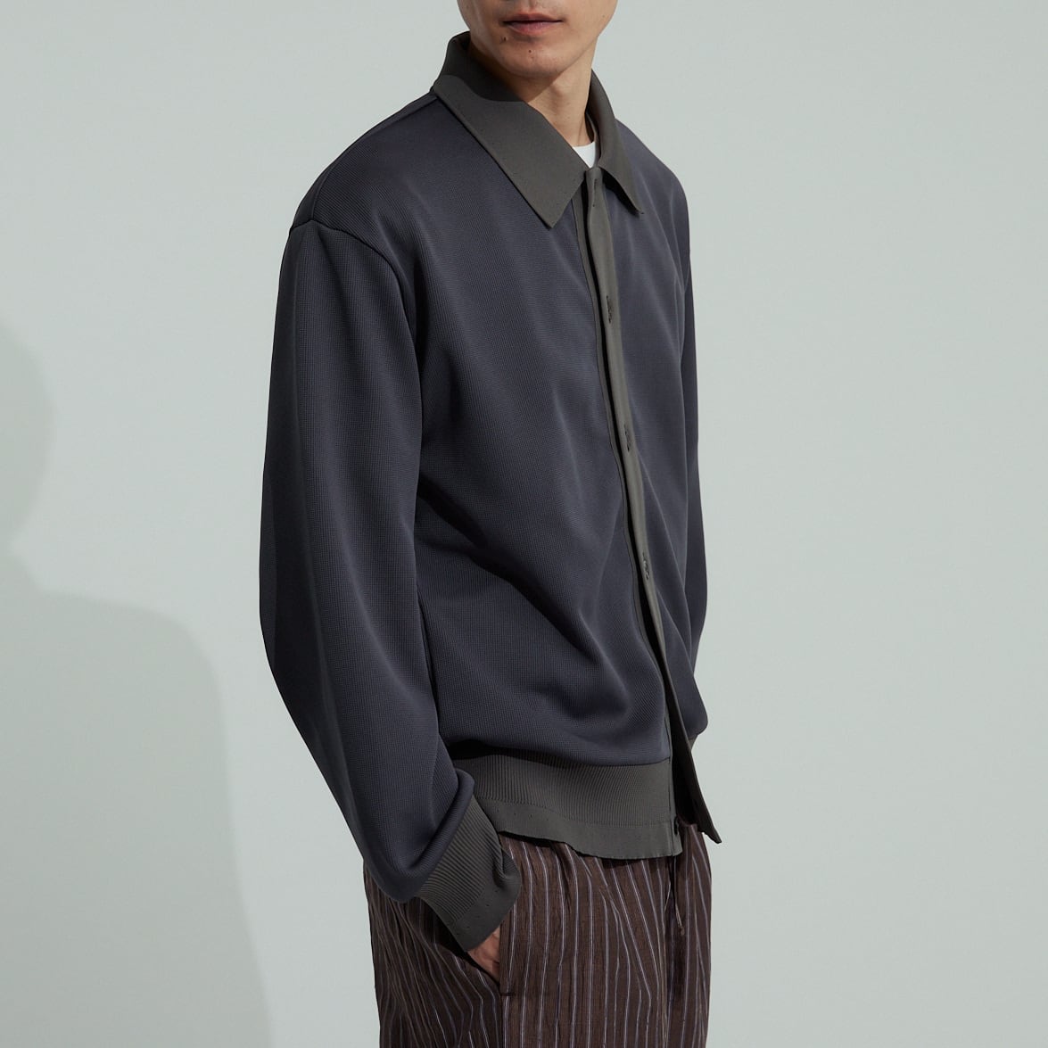 衿と袖口はオリジナルで編み立てた特別なリブがあしらわれており、シンプルながら気の利いたデザインがワンポイントに。こう言った細かなディティールが、高級感と品の良さを生みます。