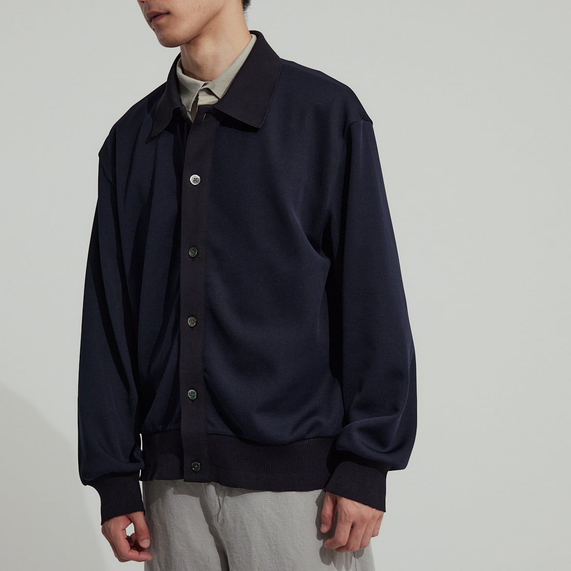 インナーにはレギュラーシャツの他、Tシャツやバンドカラーのシャツなどが好相性。そのどちら共を着込んでもまだ羽織れるくらいの余裕を持ったサイズ感なので、気温の不安定な季節の変わり目にピッタリです。
