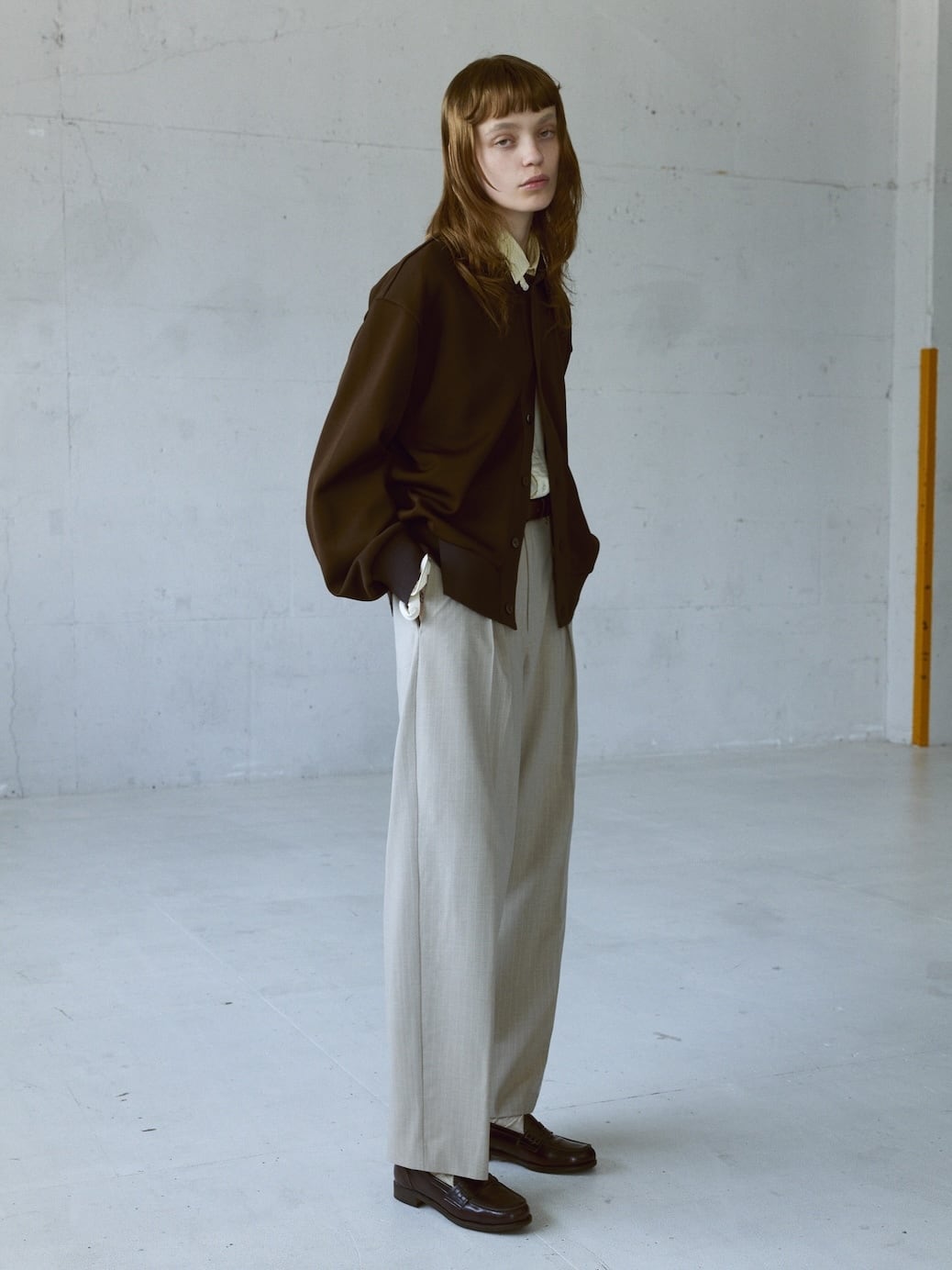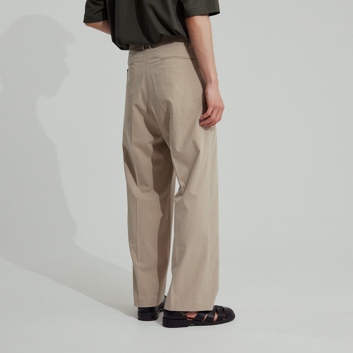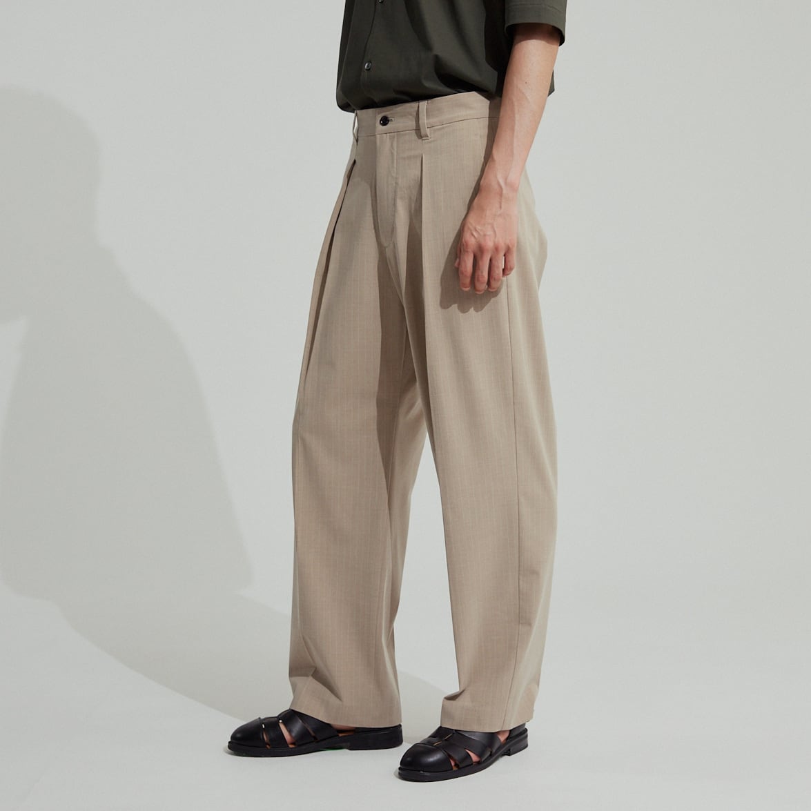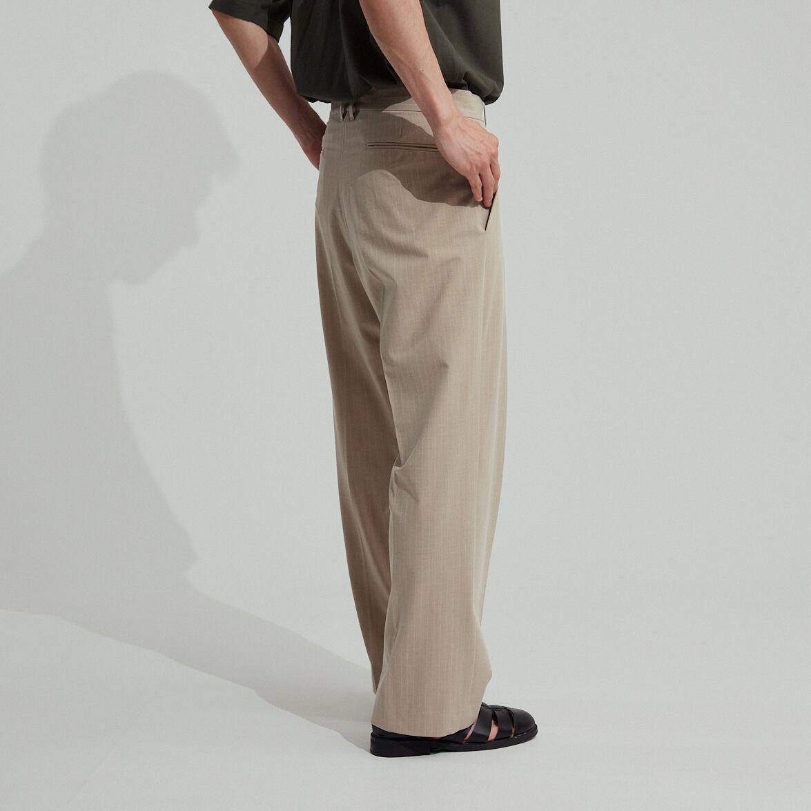 登場以来当ブランドの定番となった"360度どこから見ても美しいシルエット"に拘ったワンタックパンツ、今シーズンはクールなピンストライプ柄の登場です。