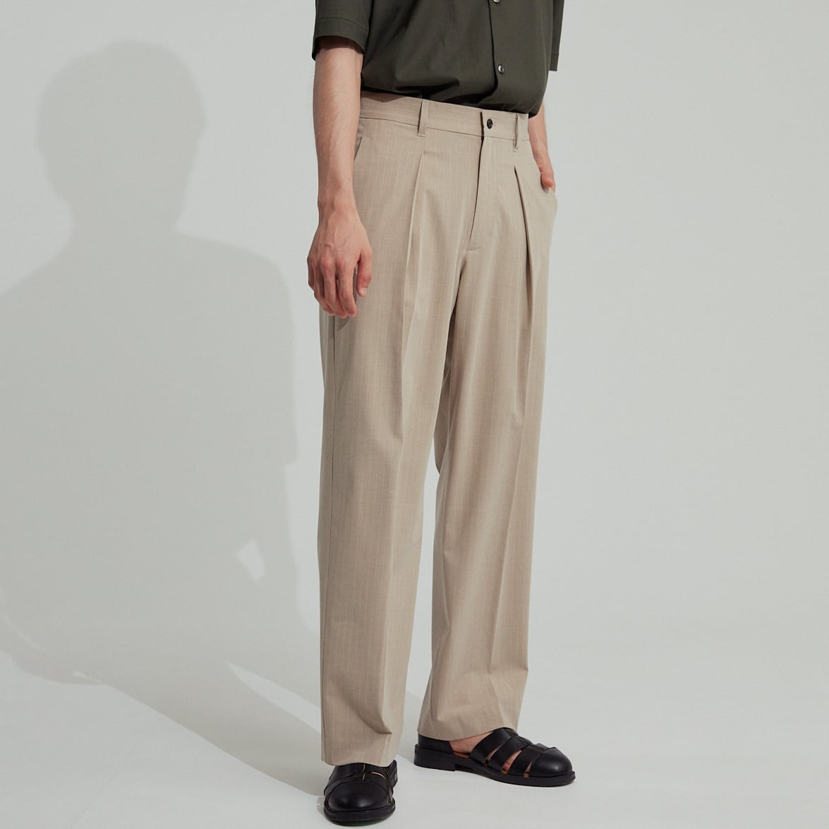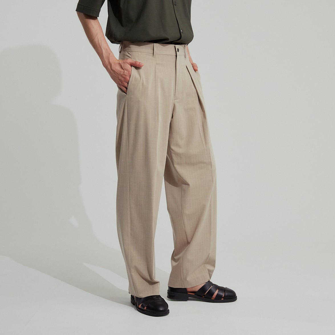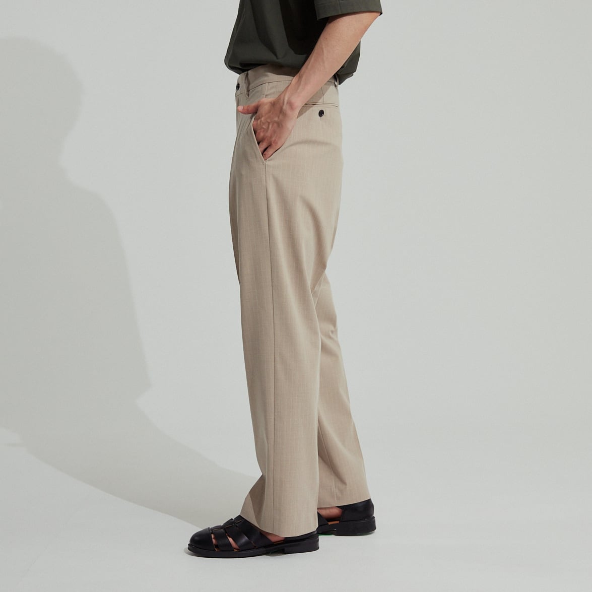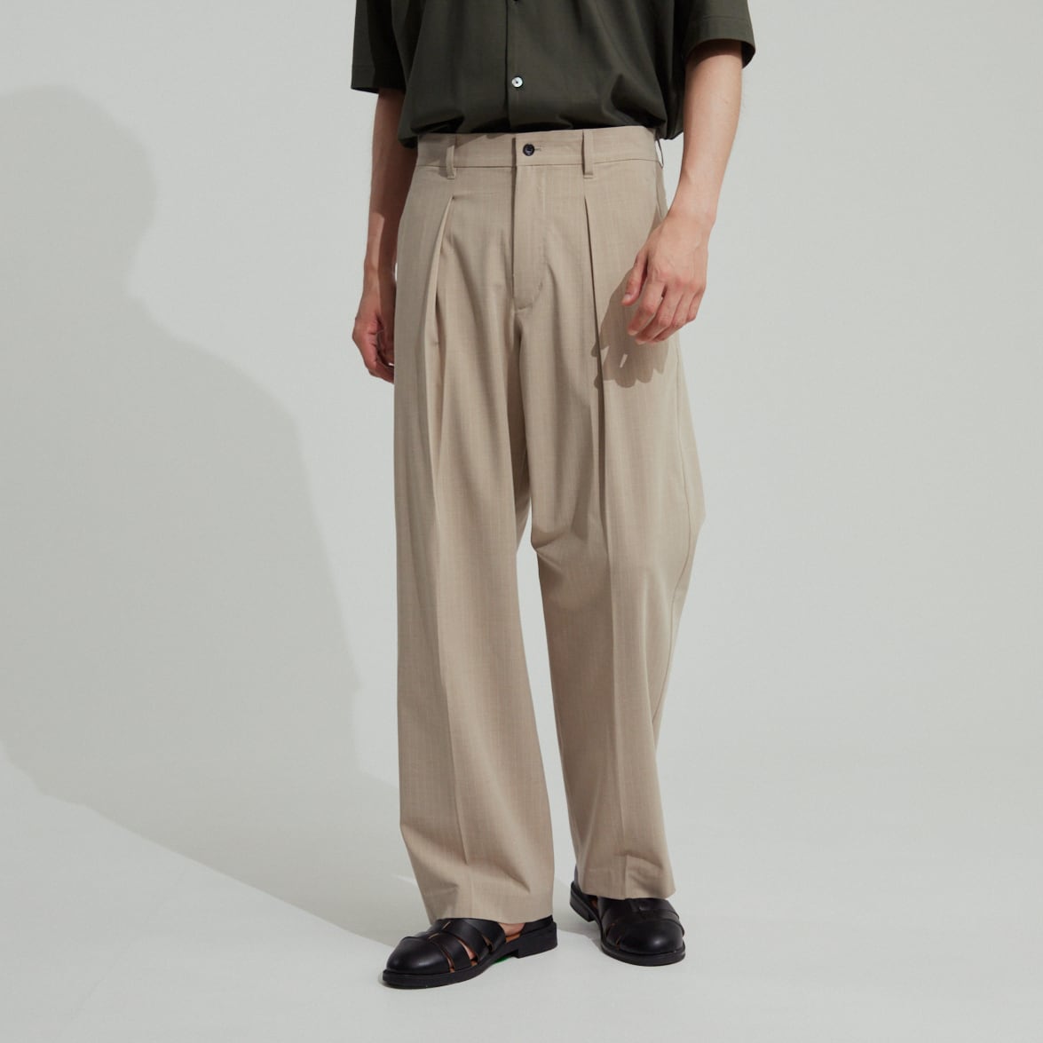 登場以来当ブランドの定番となった"360度どこから見ても美しいシルエット"に拘ったワンタックパンツ、今シーズンはクールなピンストライプ柄の登場です。
