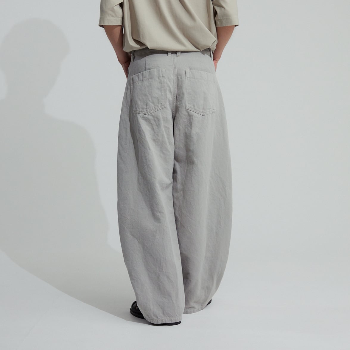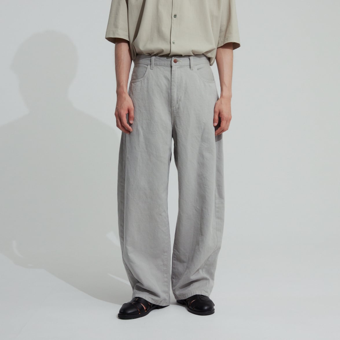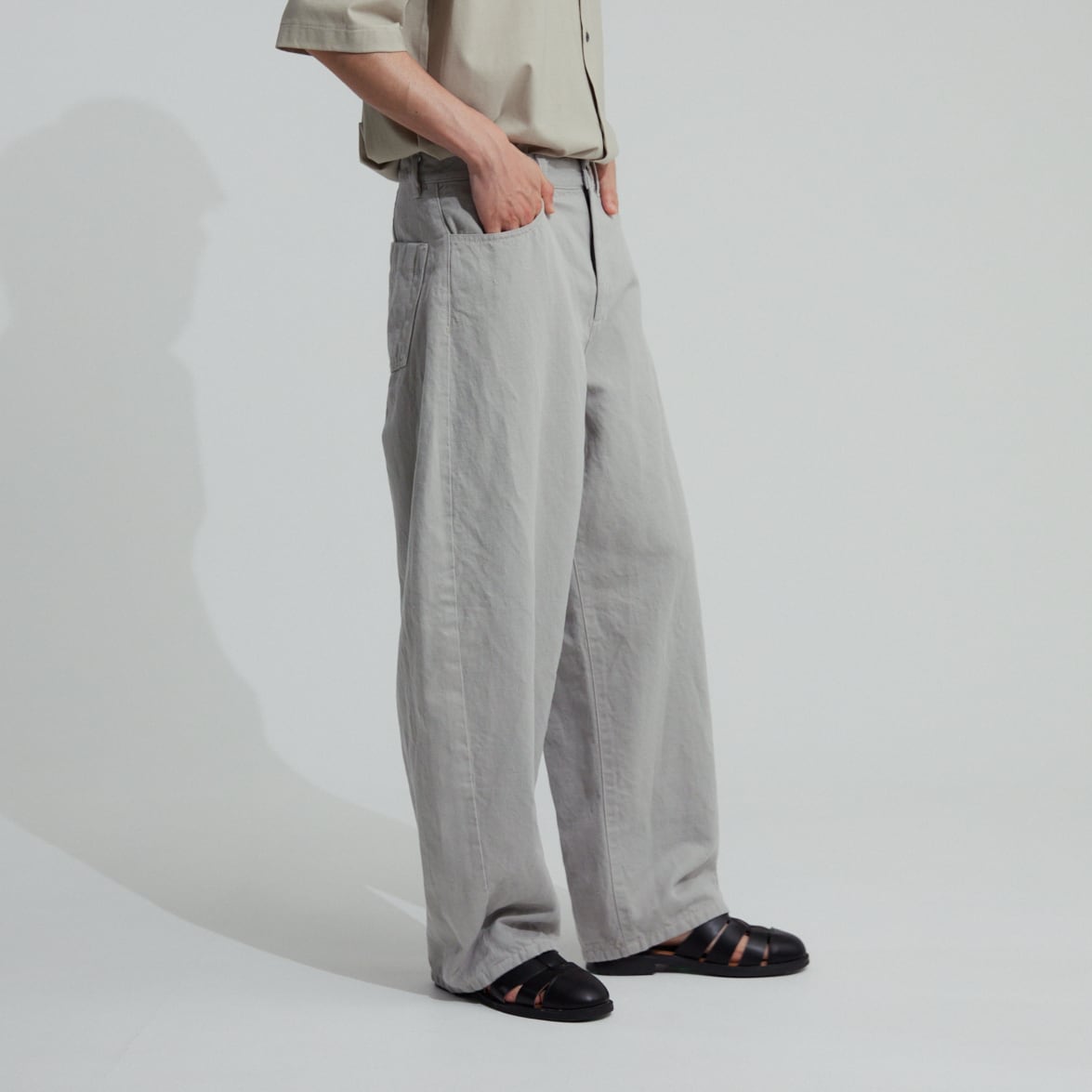 もも周りから裾にかけて、特徴的なボリュームを持たせたバレルレッグパンツが新登場!