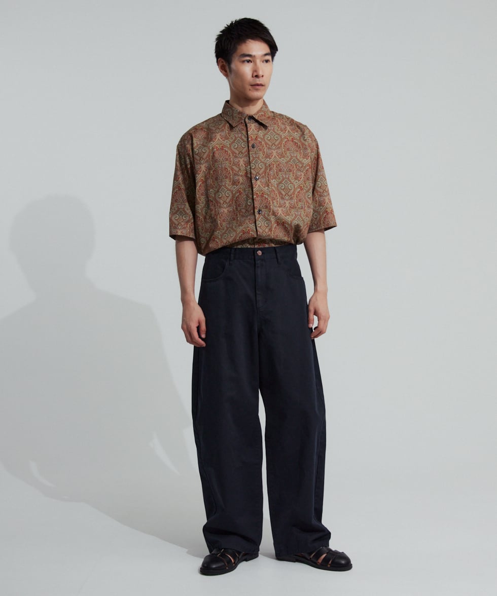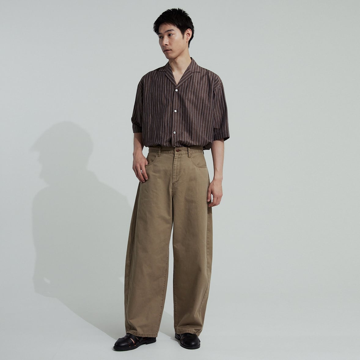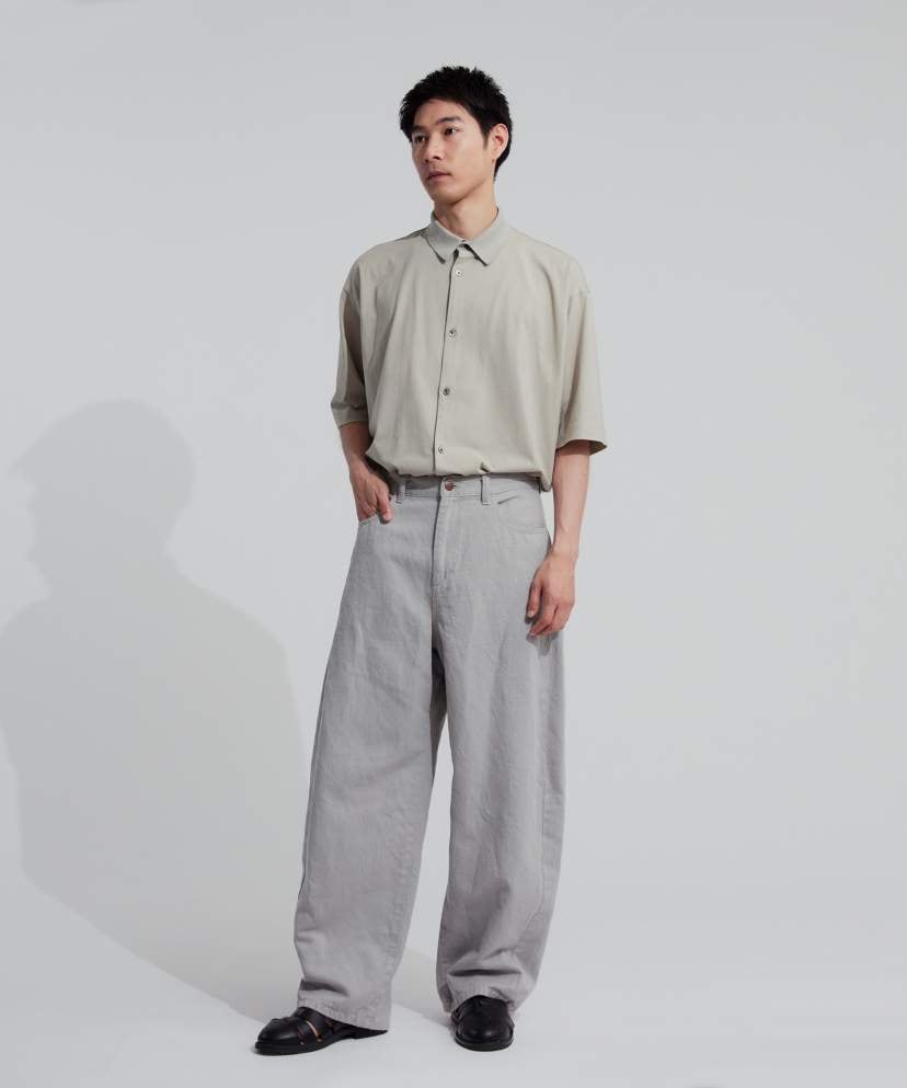 デニム素材なので一見カジュアルですが、程よく落ち感が出る様に生地選びや加工を施しているので、一味違った大人な空気感があります。