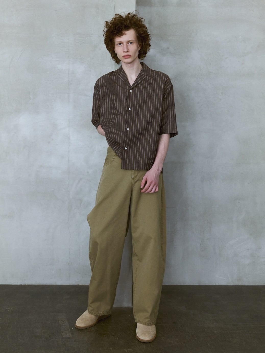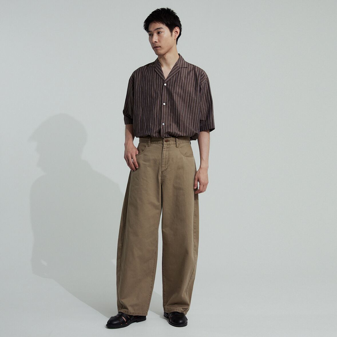 男性モデル身長:185cm 着用サイズ:4 (BEIGE), 5 (LIGHT GRAY)