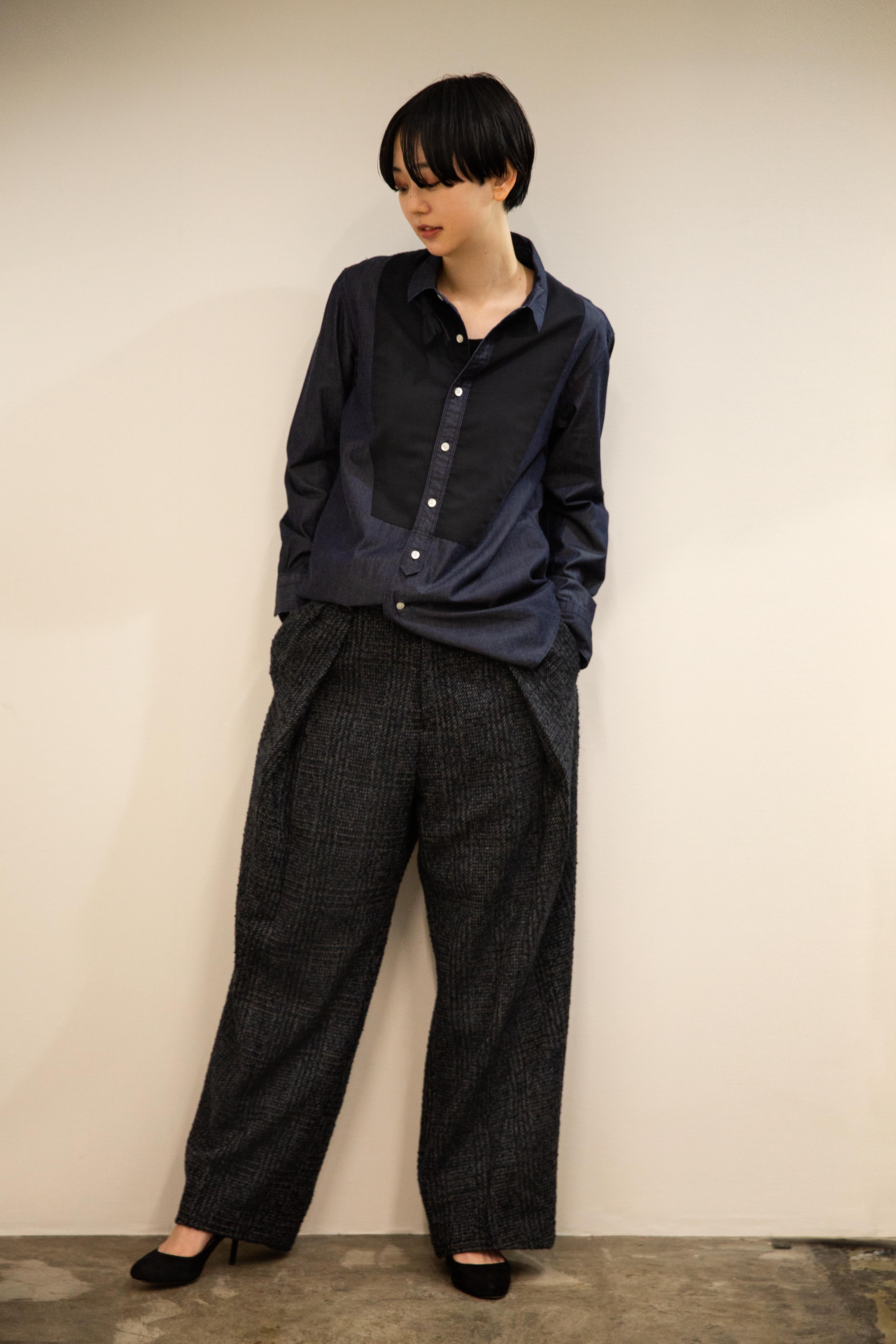 同生地の「TWEED SHAWL COLLAR JACKET / ツイードショールカラージャケット」とセットアップもおすすめです。