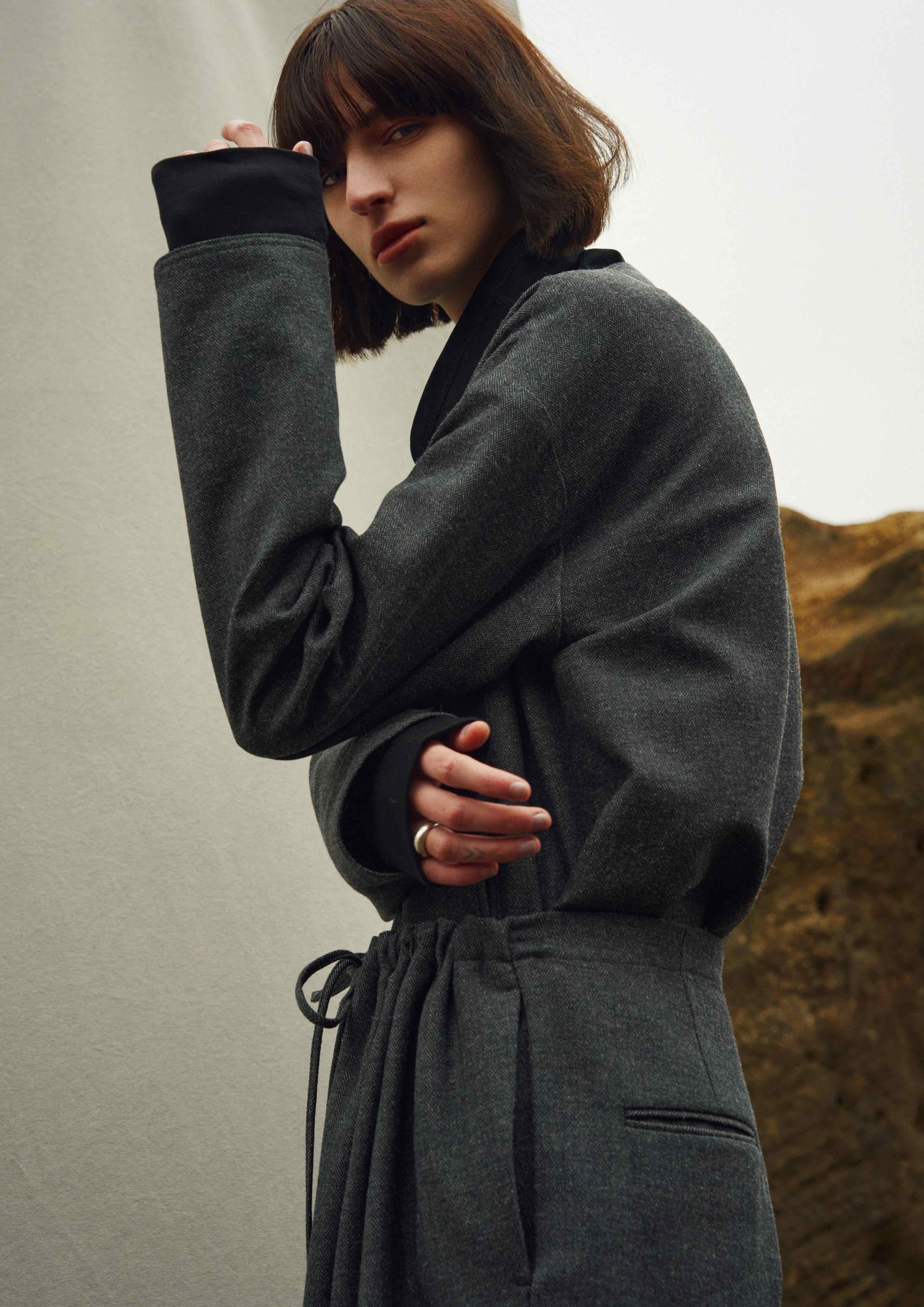 首元に余裕のあるボトルネックデザインは、程よい抜け感を演出します。