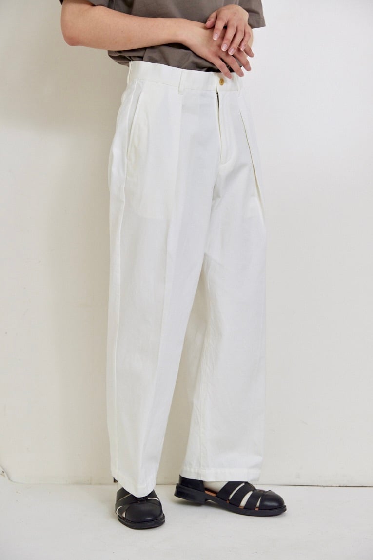 360度どこから見ても美しいシルエットに拘った定番ワンタックパンツにクラシックなチノ素材が登場。