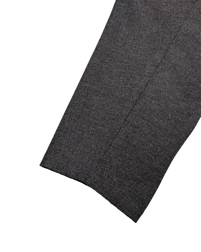 同生地の「C/W HERRINGBORN NO COLLAR JACKET / 綿ウールヘリンボーンノーカラージャケット」とセットアップで揃えるのもおすすめです。