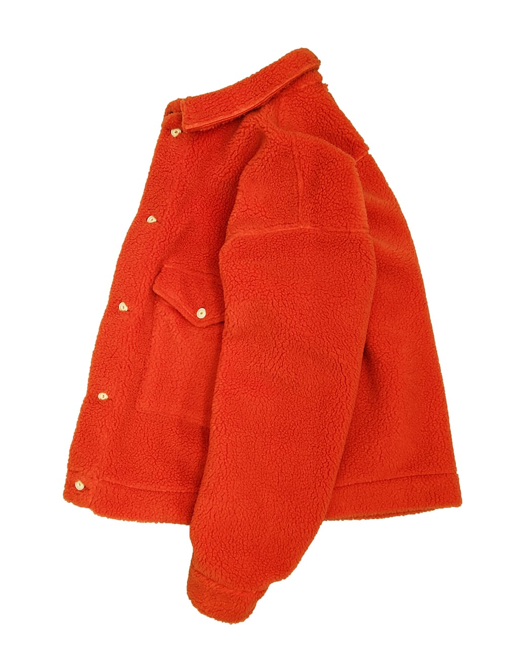デザインは、大きめのパッチポケットやフラップ、わずかにインカーブする衿など、古着を彷彿とさせる細かなディティールがポイントです。