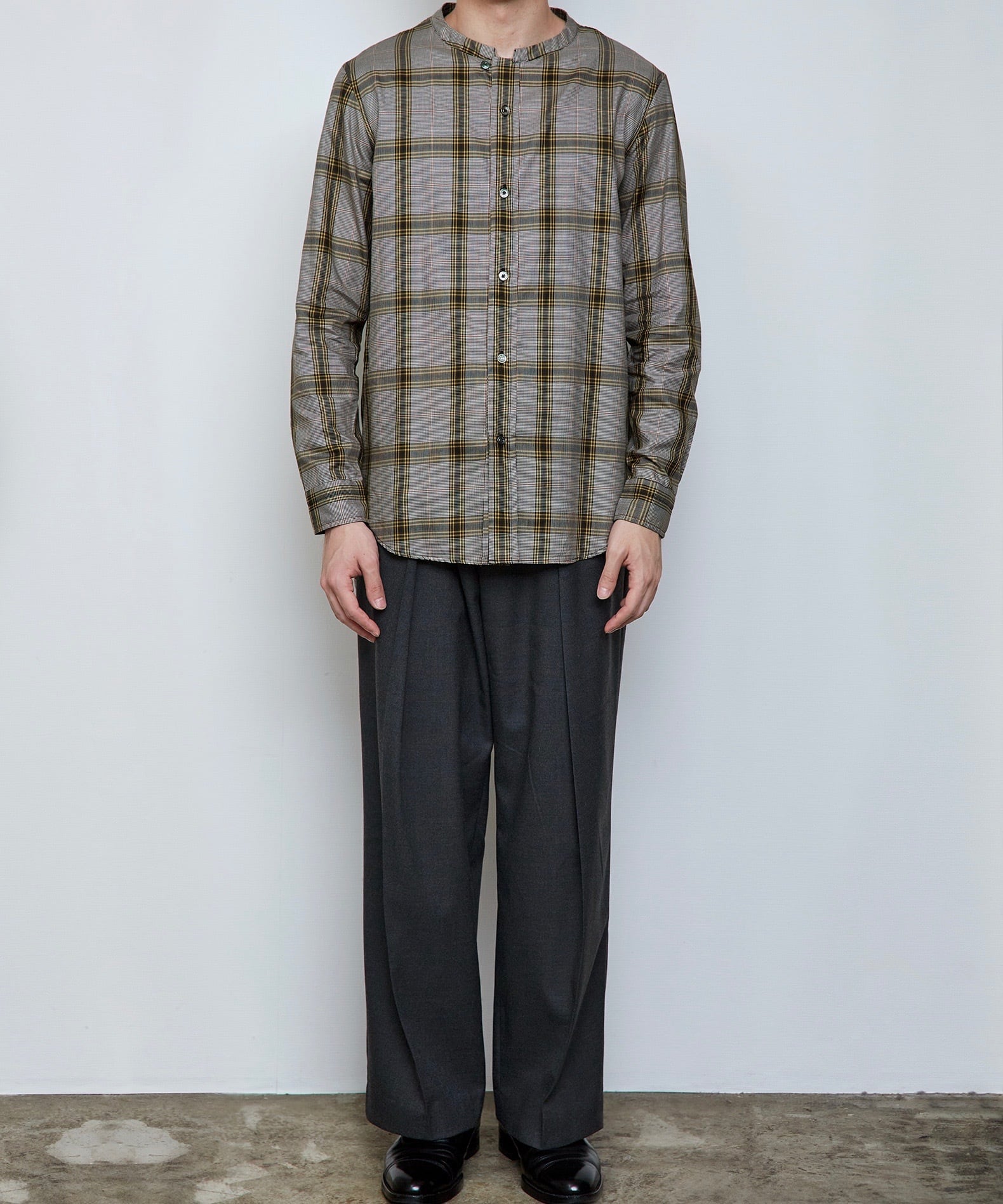 SQ HEM BAND COLLAR SHIRT / 綿チェックバンドカラーシャツ (GRY)