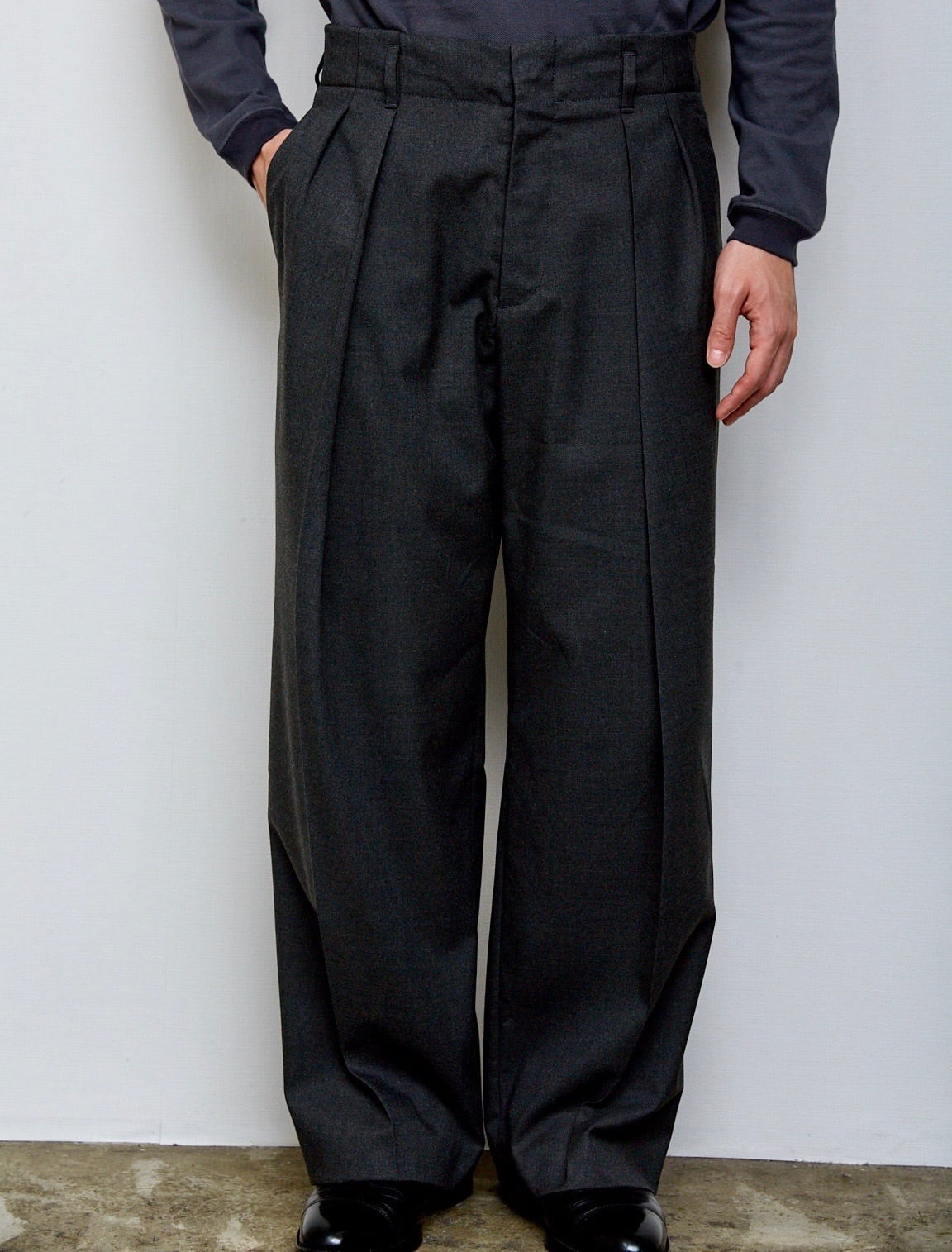 2タック仕様で腰回りがゆったりとした ワイドシルエットですが、インタックの為、外側に広がりすぎずトップスとのバランスが取りやすいのもポイントです。