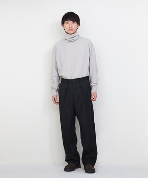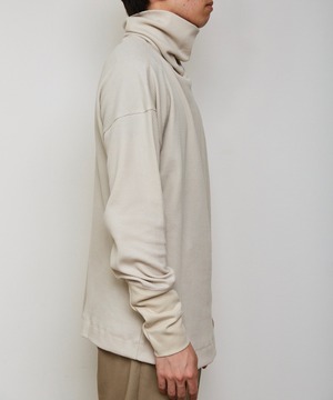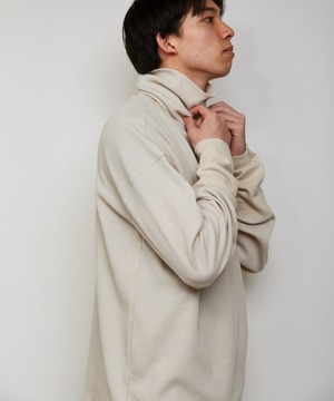 大きめのサイズ設定になっていますので、ハイネックニットの様に一枚でバサッと着て頂くもよし、大きめのブルゾンとの重ね着も大変好相性です。