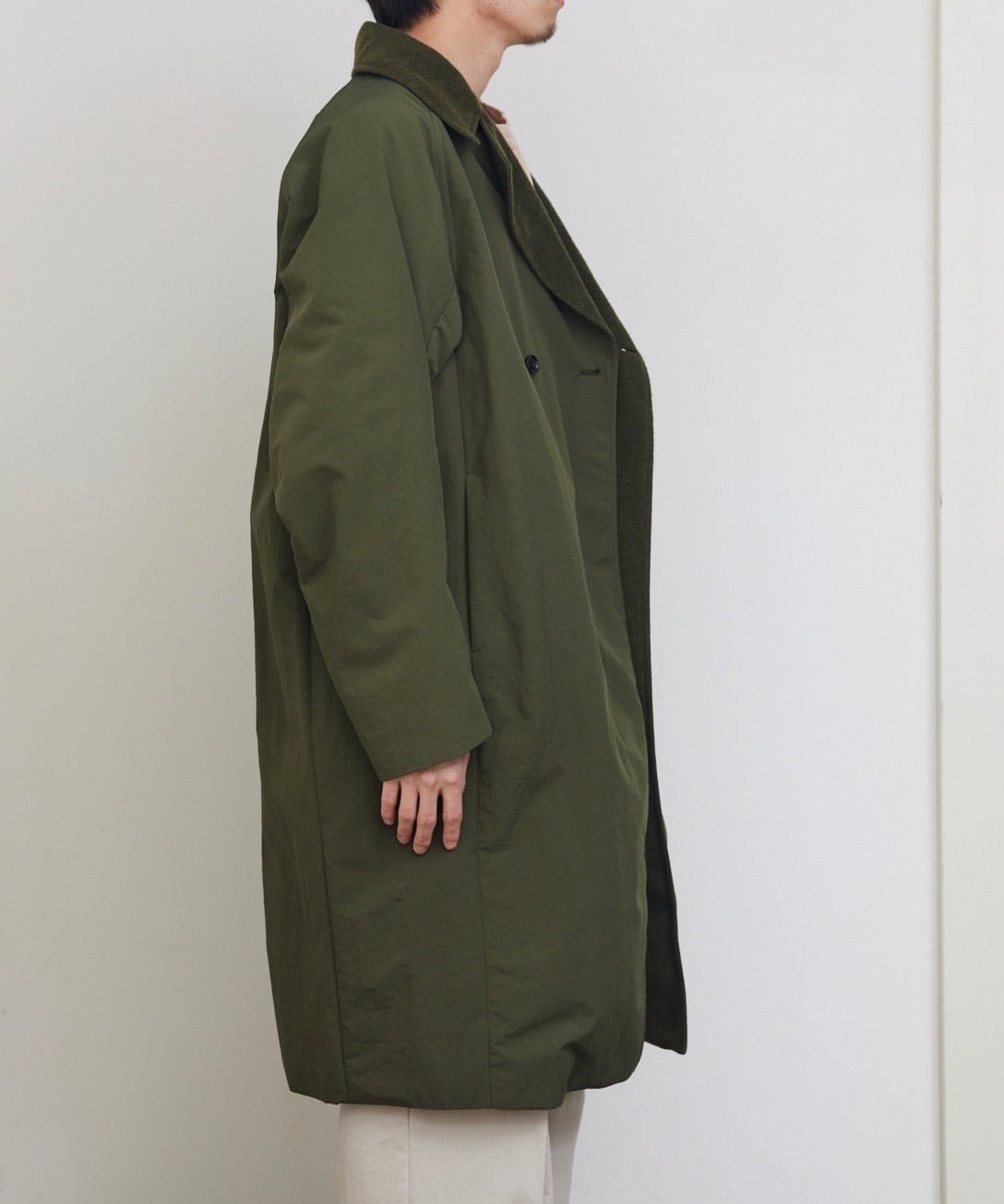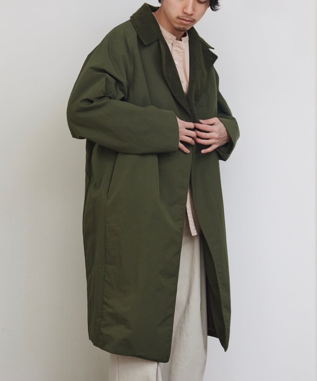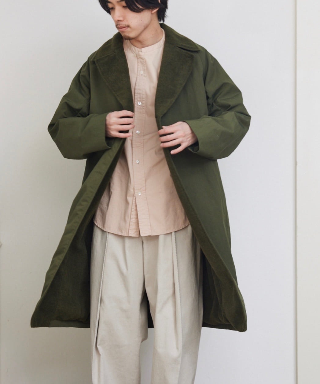 軽量で肩幅も気にせず着用出来るので、女性にも雰囲気のあるオーバーサイズコートとして大変人気です。