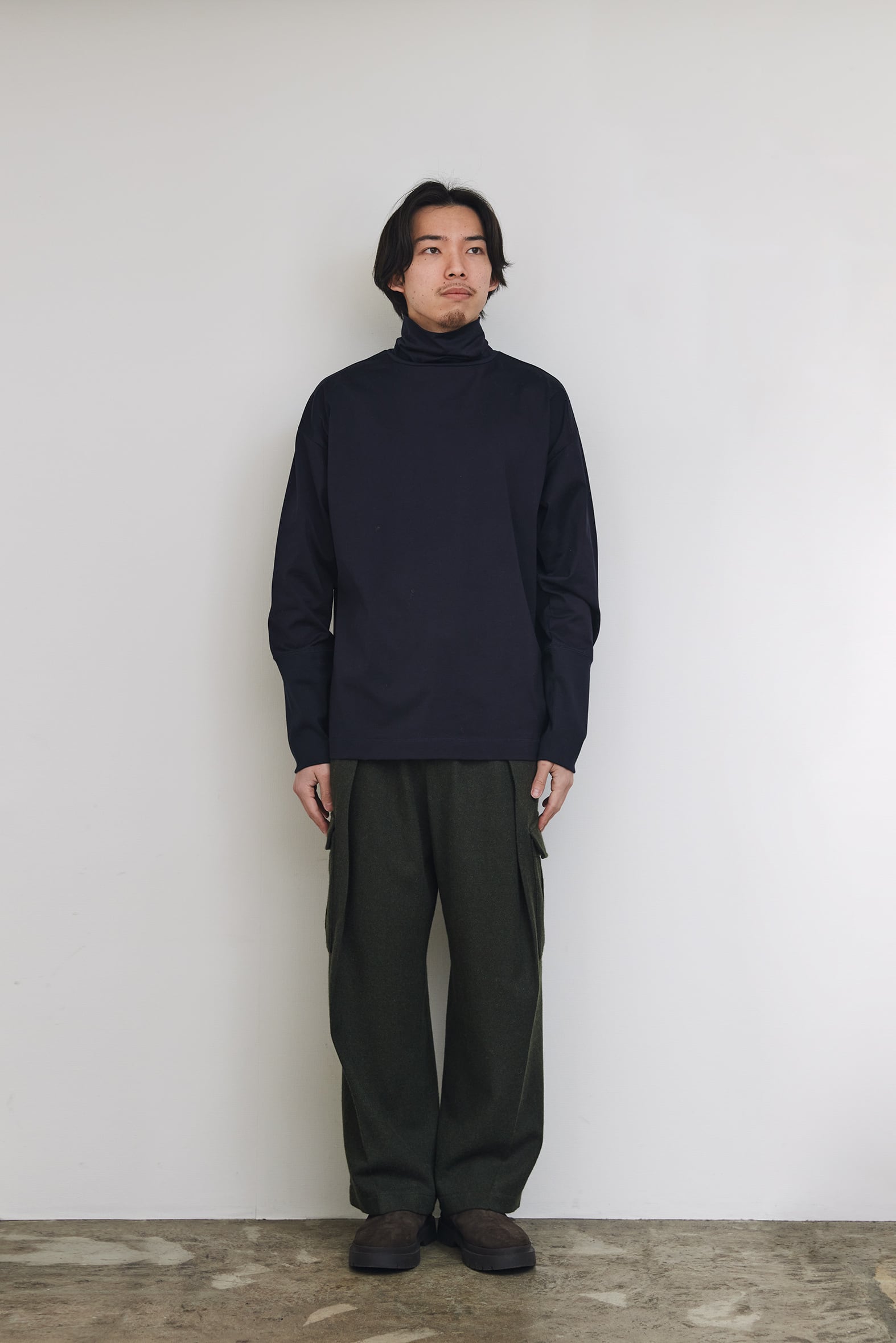美しい表面感と抜群の肌触りが特徴のハイネックカットソー。