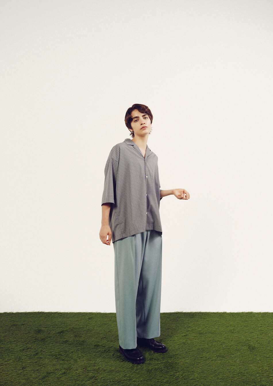 清涼感のあるカラーと適度な落ち感の美しい素材のコンビネーションは、春夏の新しい着こなしバリエーションに最適です。