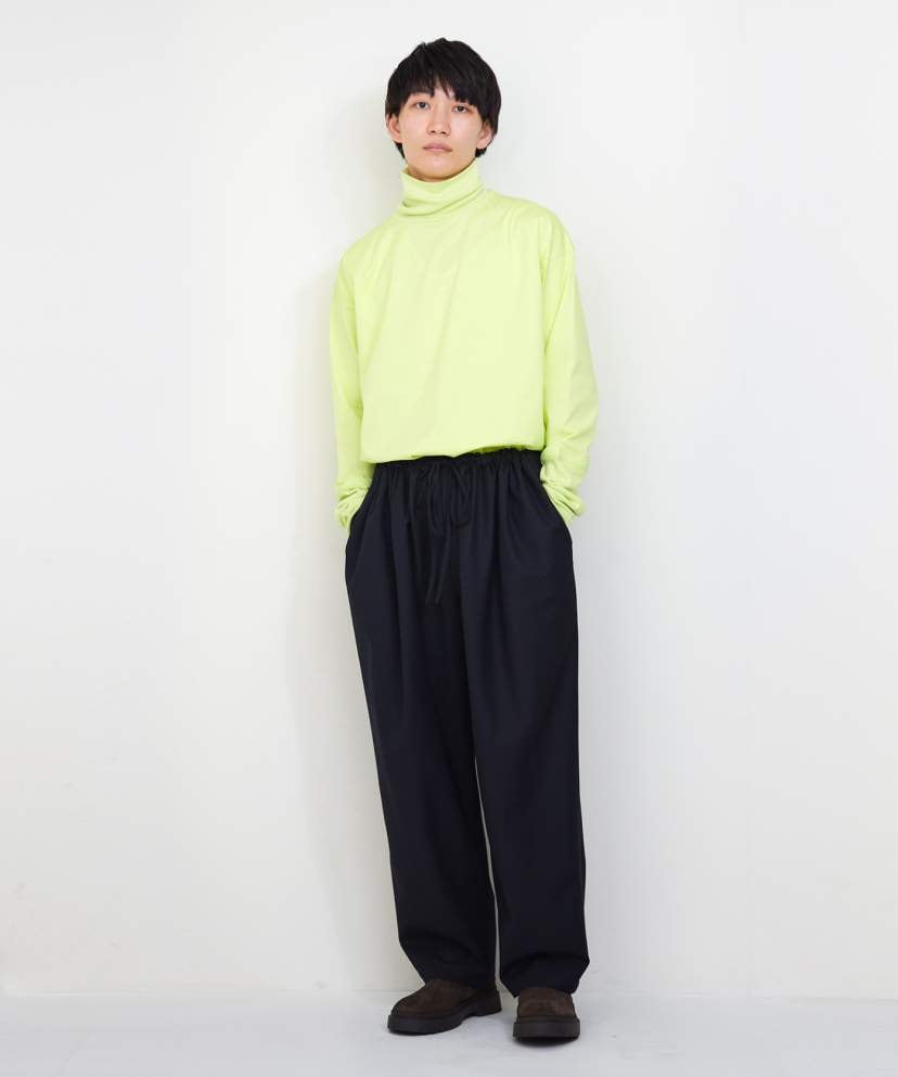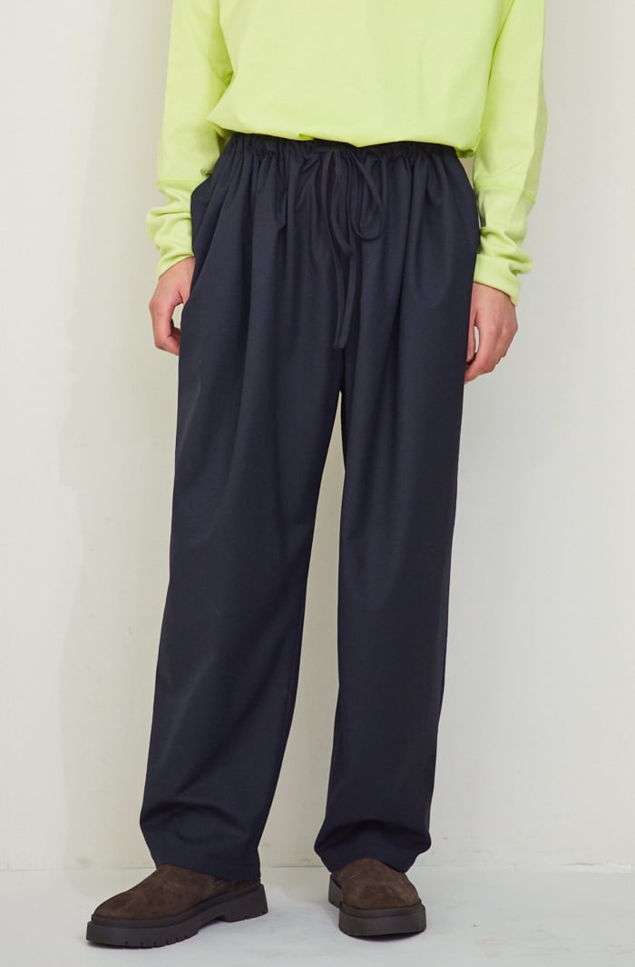 ボリュームがありながら大変上品な落ち感のある今季のギャザーパンツ。これ一本でシンプルなアイテムとのコーディネートが抜群に映えます。
