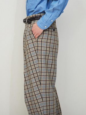 チェック柄の色目は彩度を抑えた落ち着いた雰囲気なので、どんなトップスとも馴染みやすく汎用性が高いのがポイントです。