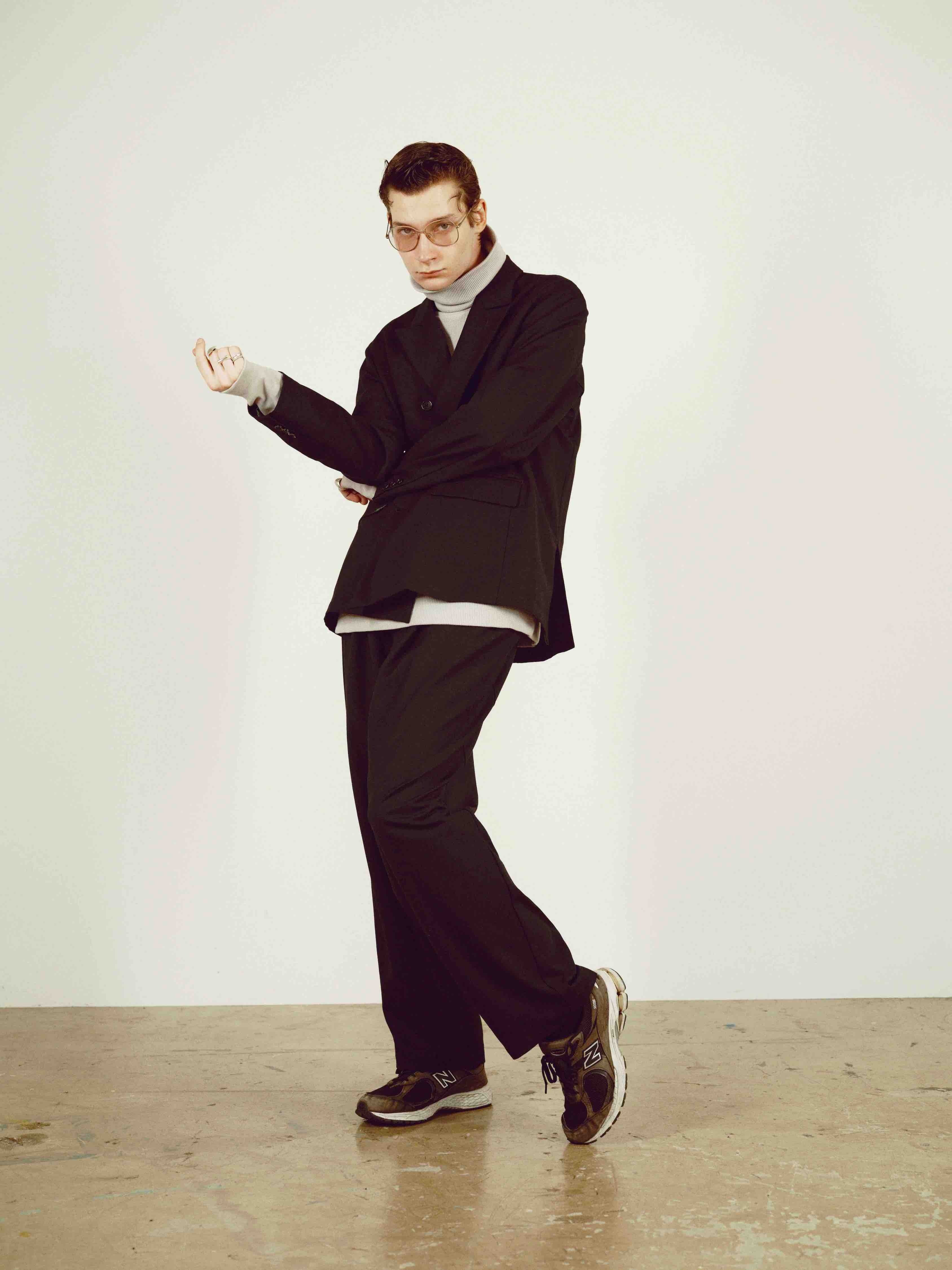 今年はボトムに細身のシューカットパンツを合わせるのがデザイナー一押しのコーディネートです。