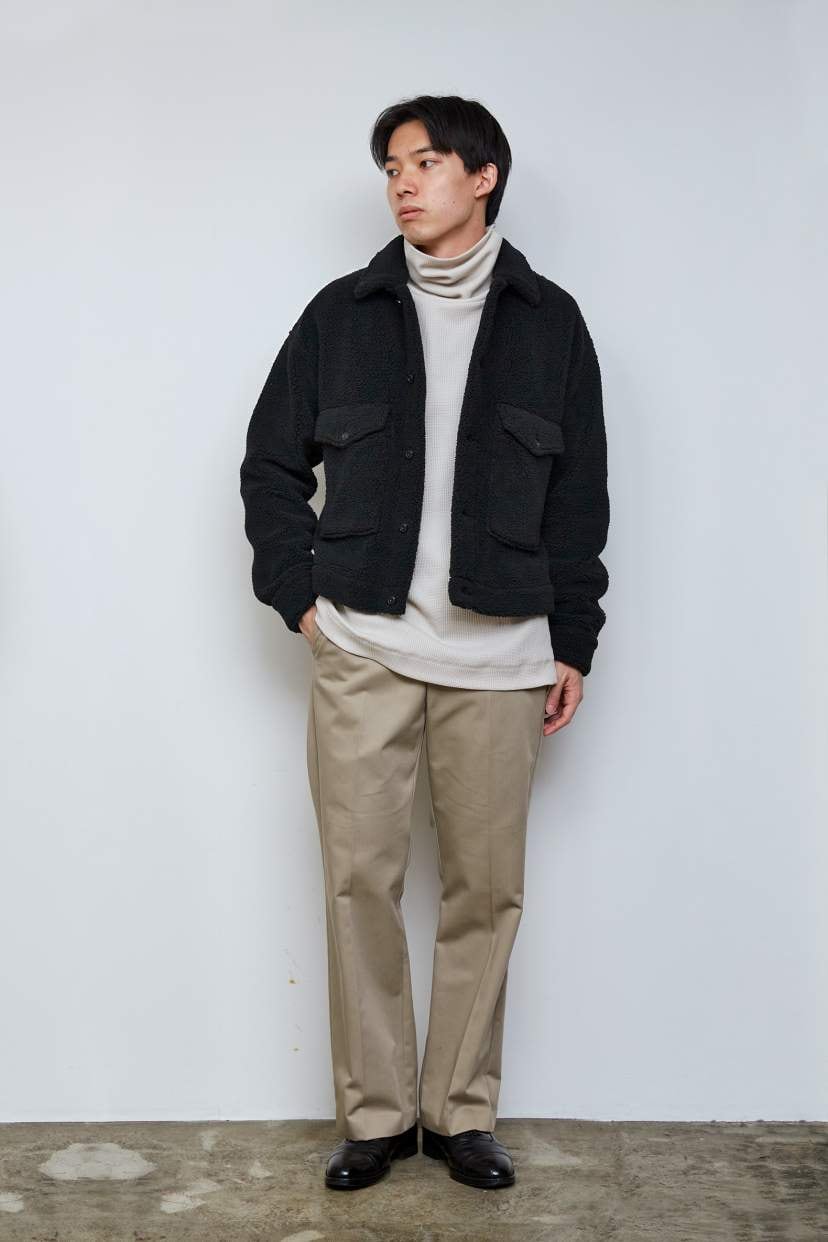 大きめのサイズ設定になっていますので、ハイネックニットの様に一枚でバサッと着て頂くもよし、大きめのブルゾンとの重ね着も大変好相性です。