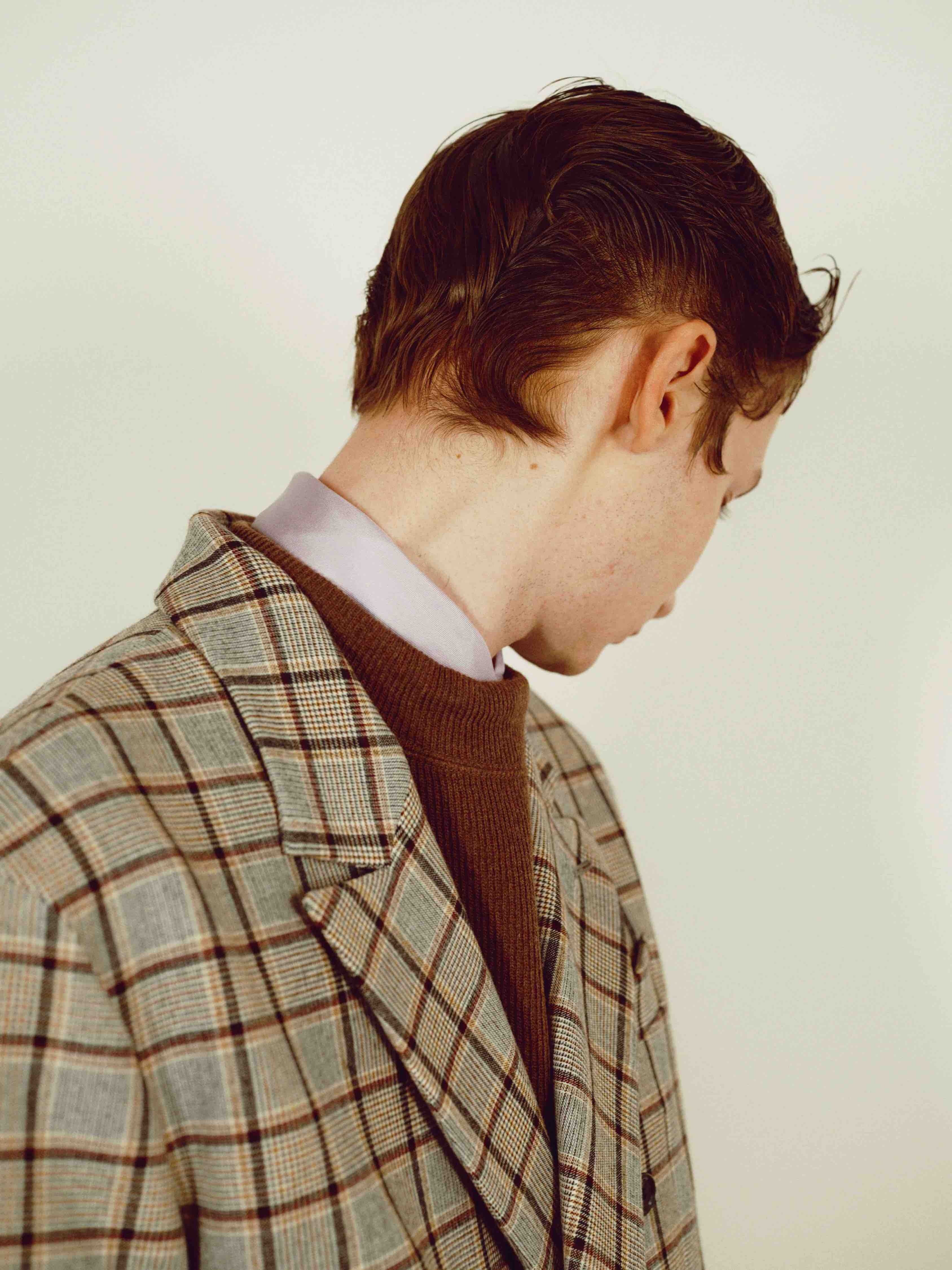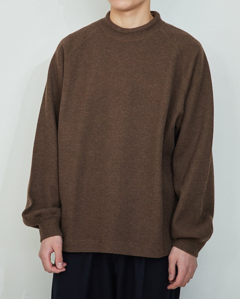 首に少し立ち昇るモックネックのデザインですが、衿の裏を含め裏は全て綿素材をプレーティングしてあるので、ウールのチクチクが苦手な方に是非おすすめしたい1着です。