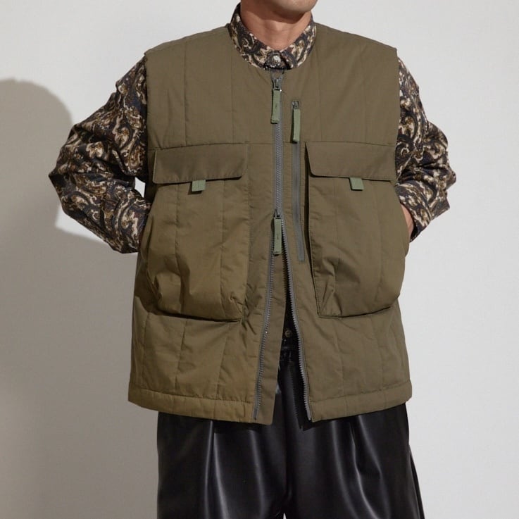 カジュアルなスタイルはもちろん、上品なキレイめのスタイルにも、さまざまなシーンでお使いいただけるこのベストで是非秋冬のお出かけをお楽しみ下さい。