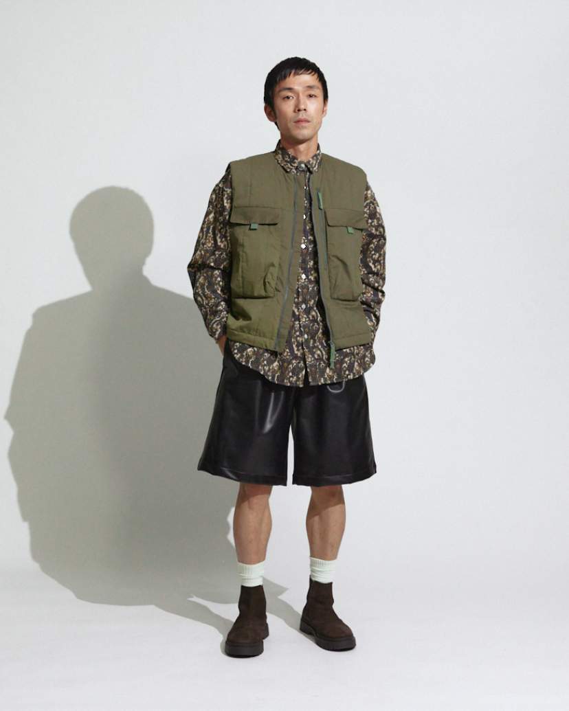 秋口には一枚アウターとしてニットやシャツの上に、またアームホールをやや広めに空けているので、寒い季節にはジャケットやブルゾンと重ね着を楽しむのにも適しています。