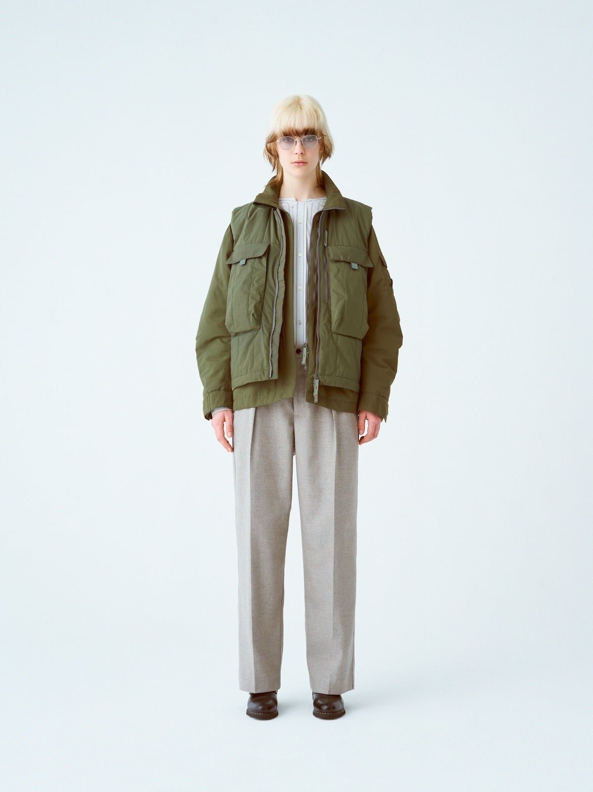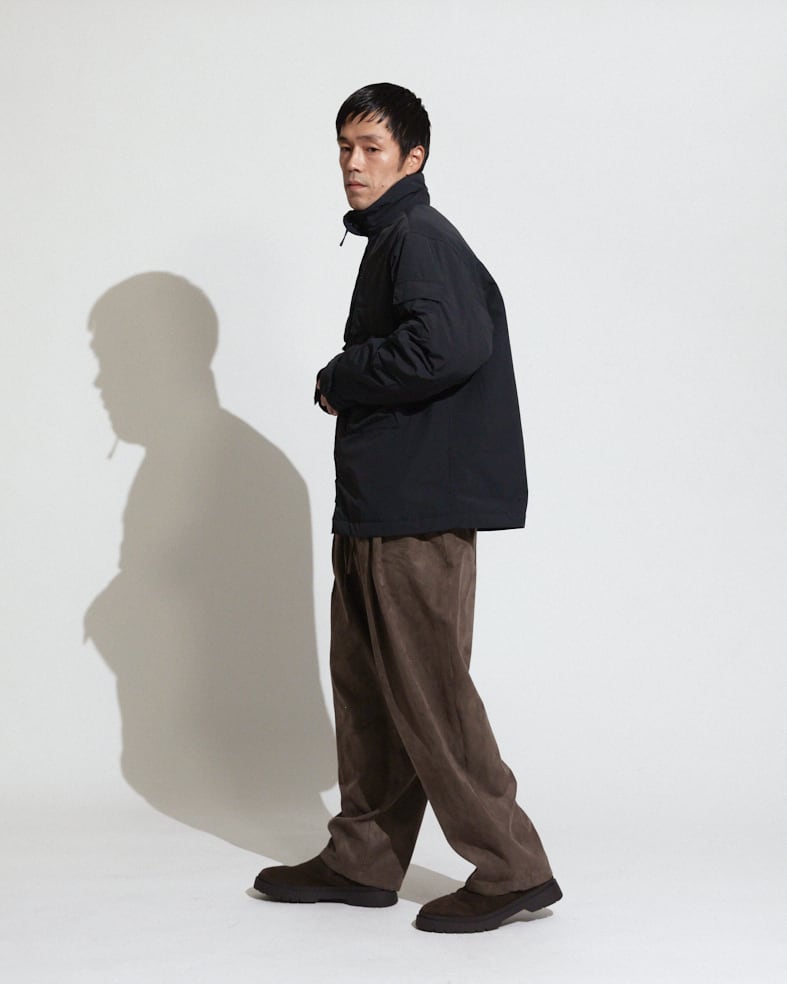 同時リリースのベストとの重ねコーディネートは、カッコ良さだけでなく保温性の向上や温度調節のし易さから大変おすすめです。