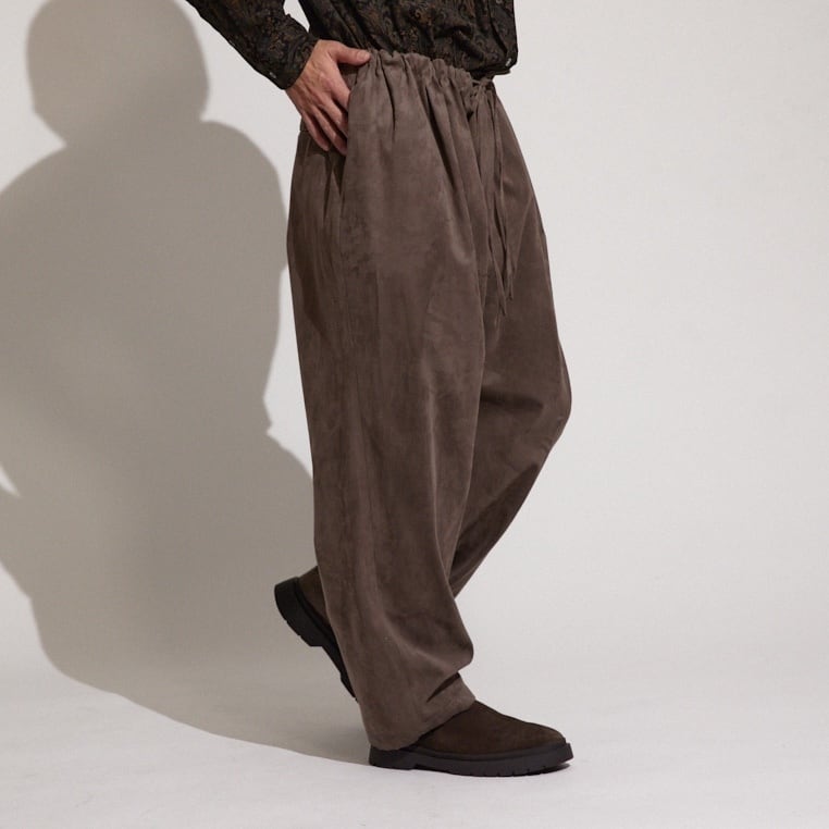 きめが細かく本物と見紛うようなスウェード素材は、その上質な見た目と扱いやすさ・軽さを兼ね備えストレッチの効いたハイブリッドタイプ。柔らかく温かで、ストレッチも効いておりジャージの様な軽やかな穿き心地です。