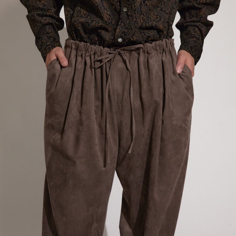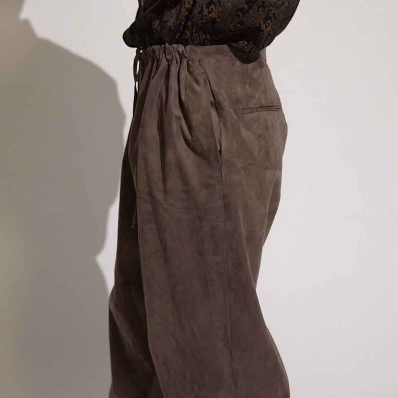 ボリュームがありながら大変上品な落ち感のある今季のギャザーパンツ。これ一本でシンプルなアイテムとのコーディネートが抜群に映えます。