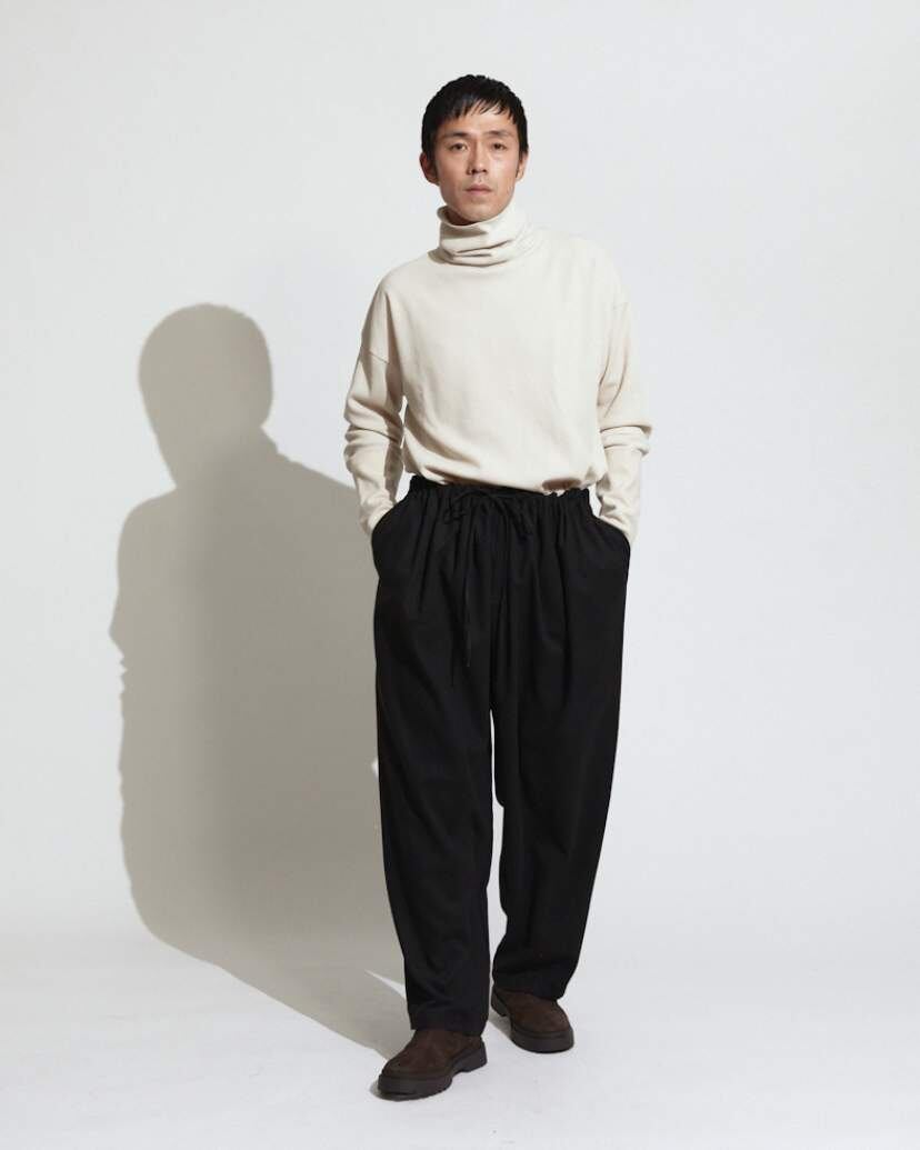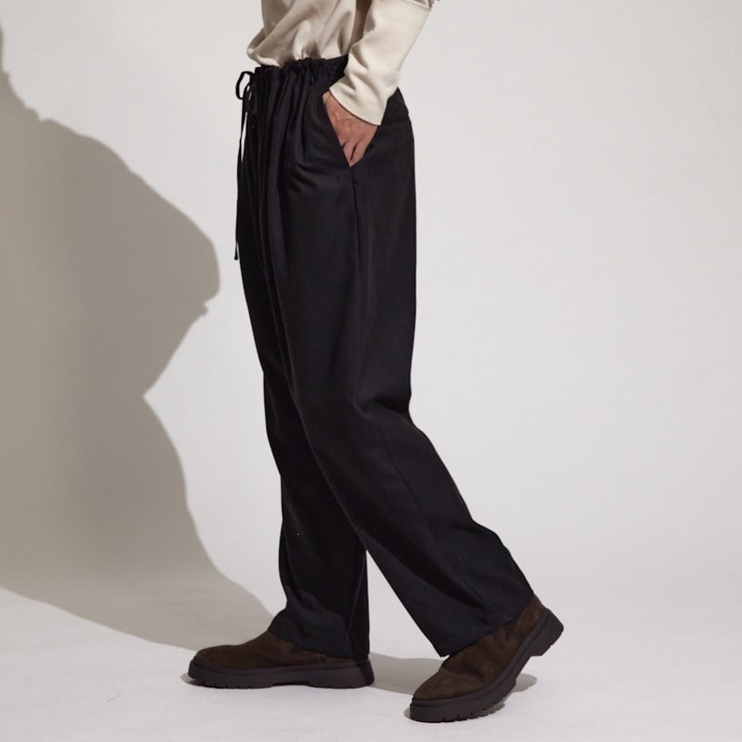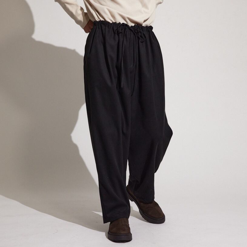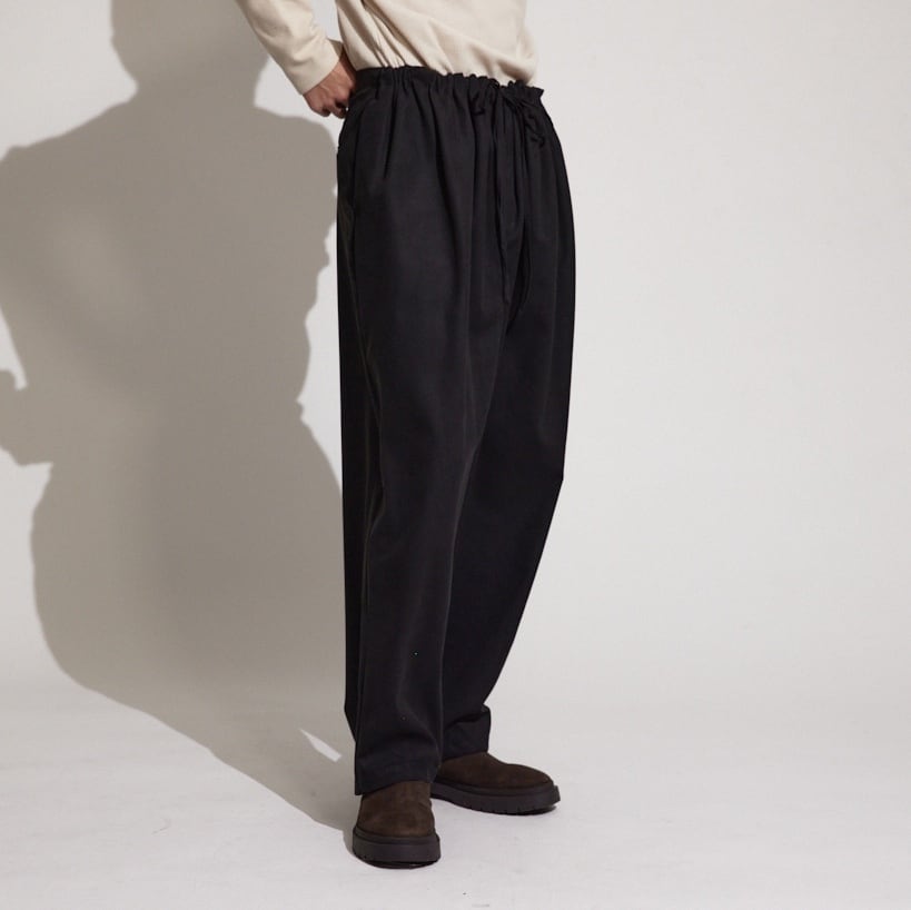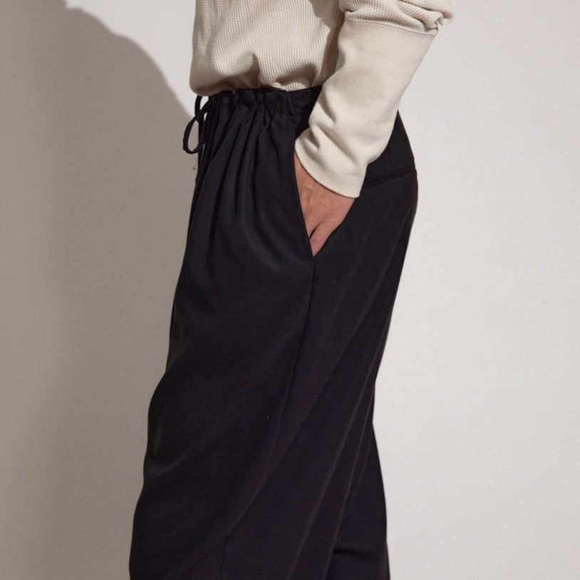 ボリュームがありながら大変上品な落ち感のある今季のギャザーパンツ。これ一本でシンプルなアイテムとのコーディネートが抜群に映えます。