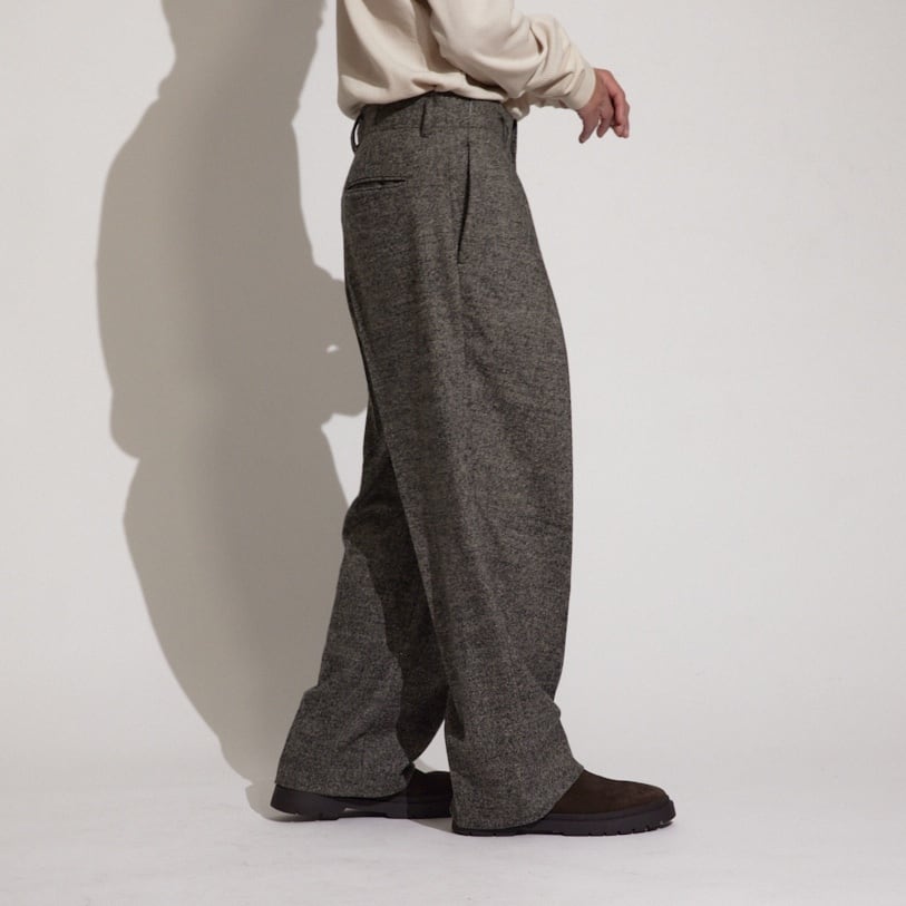 2タック仕様で腰回りがゆったりとした ワイドシルエットですが、インタックの為、外側に広がりすぎずトップスとのバランスが取りやすいのもポイントです。