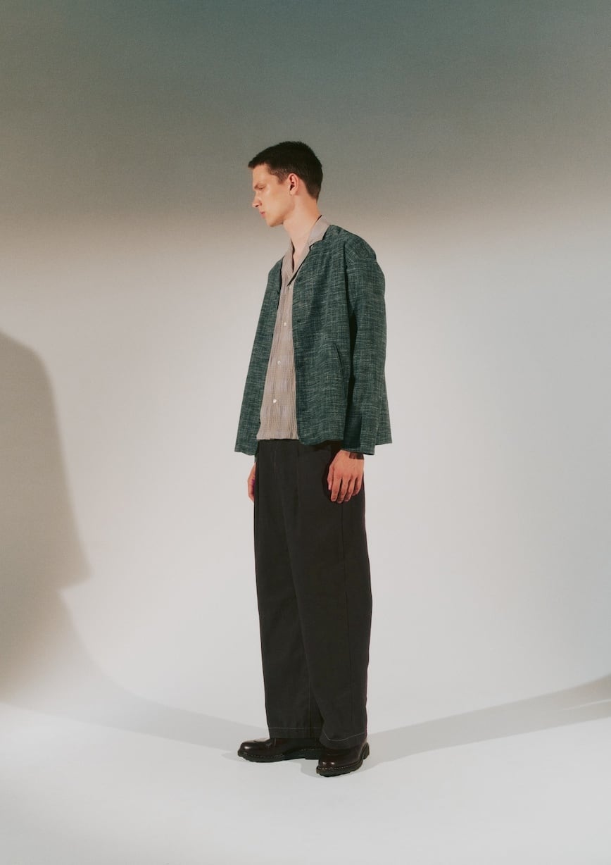とことん美しいシルエットに拘ったスラックスのパターンを用いて、今シーズンはあくまでカジュアルな仕上げを施しているのが特徴です。
