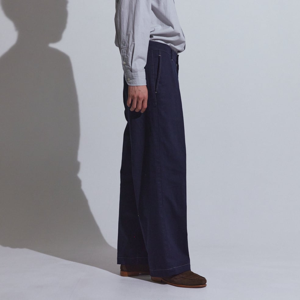 チノに近い、ライトなコットンドリル素材を落とし込んだ、定番ワンタック型パンツです。